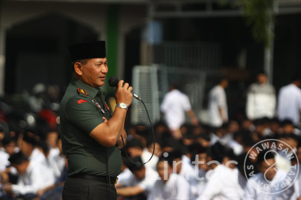 “Adik-adik semua, dari santri harus lahir intelektual yang berilmu dan berakhlak mulia. Kalau ingin sukses, dengarkan guru, hormati kiai, dan jangan lupa berdoa,” ucap Pangdam.