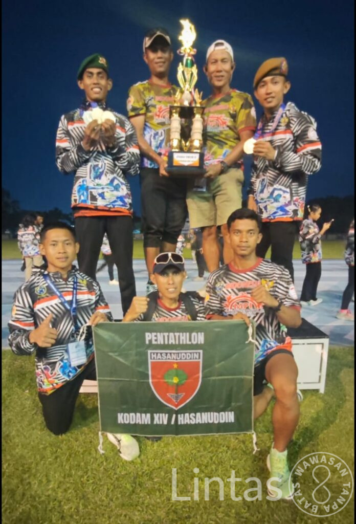 Yogyakarta – Atlet Kodam XIV/Hasanuddin kembali menorehkan prestasi gemilang dengan berhasil meraih dua medali emas, satu medali perak dan satu medali perunggu dalam ajang Kejuaraan Nasional Modern Pentathlon yang digelar di Kompleks Akademi Angkatan Udara, Yogyakarta, Senin (6/4/2026).