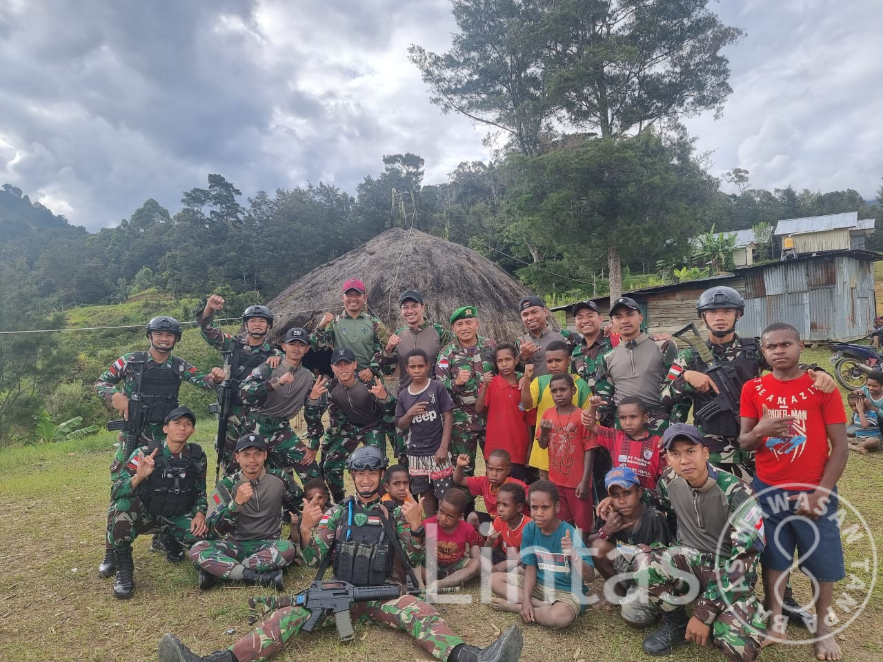 Sebagai bentuk dedikasi kepada masyarakat Papua, Prajurit Rusa Hitam Satgas Yonif 721/Mks bangun rumah Makkasau untuk tempat tinggal masyarakat di Kampung Konikme, Distrik Yugunggi, Kab. Lanny Jaya, Papua Pegunungan, Sabtu (24/05/24).
