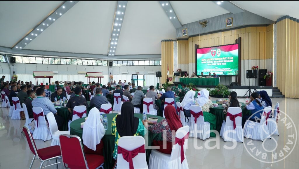Makassar – Inspektur Kodam (Irdam) XIV/Hasanuddin Brigjen TNI Wulang Nur Yudhanto, S.E., M.M., M.Han., memimpin Rapat Anggota Tahunan (RAT) Ke-56 Pusat Koperasi Kartika Hasanuddin Makassar dan Tutup Buku Tahun 2025, yang mengusung tema “Dengan Semangat Adaptif dan Solutif, Koperasi Angkatan Darat Siap Membangun Kemandirian Dalam Rangka Mensejahterakan Anggota”, bertempat di Balai Pertemuan Hasanuddin (BPH) Makodam, Jl. Urip Sumoharjo, Kota Makassar. Kamis, (16/4/2026).