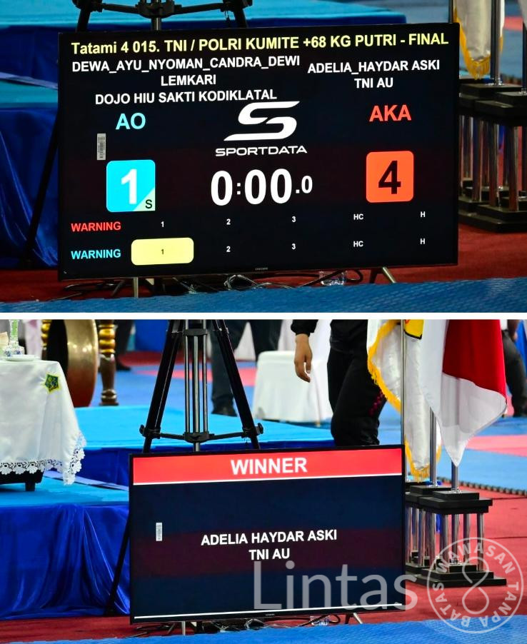 Serda (W) Adelia Haydar Danakitri Wibowo sukses meraih Juara I pada kelas Kumite +68 Kg TNI/Polri putri, sementara Pratu (P) Yongki Adrian Jotlely turut menyumbangkan prestasi dengan meraih Juara III pada kelas Kumite +84 Kg TNI/Polri putra.