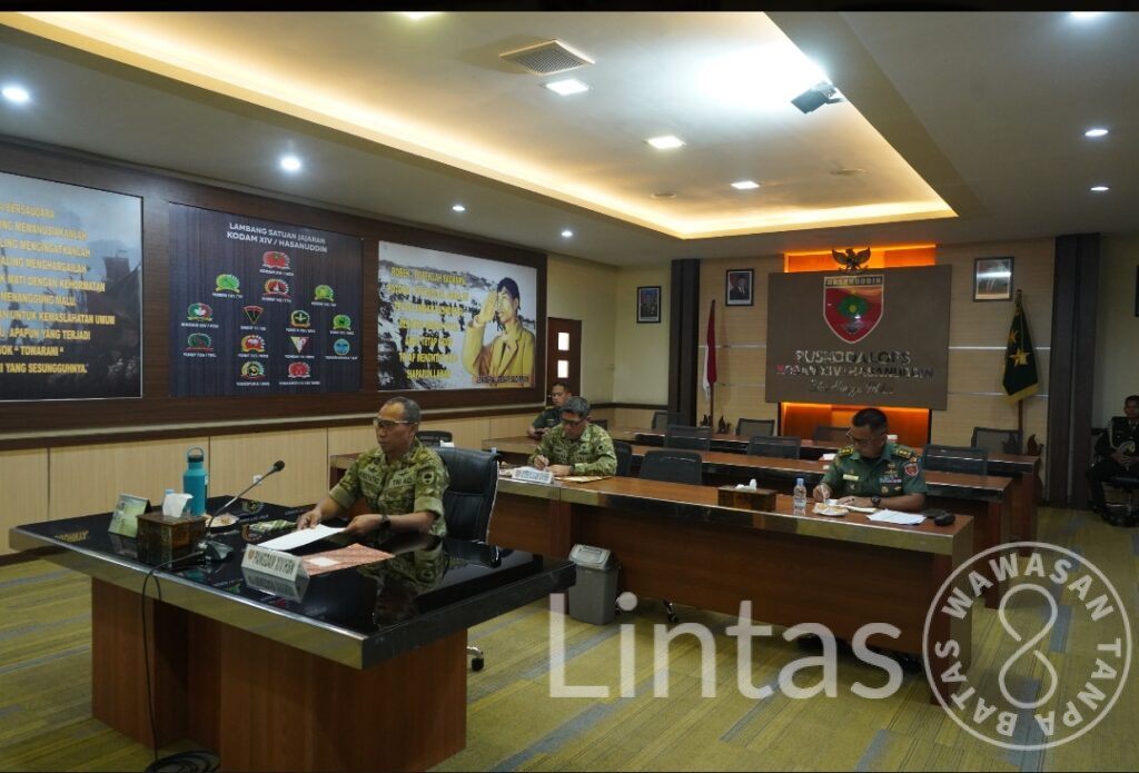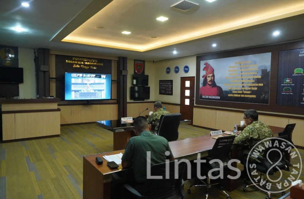 Makassar – Pangdam XIV/Hasanuddin Mayjen TNI Windiyatno mengikuti Rapat Hybrid yang membahas tentang Pembangunan Koperasi Desa/Kelurahan Merah Putih, yang dipimpin langsung oleh Wakil Panglima TNI, Jenderal TNI Tandyo Budi Revita, melalui video conference (Vicon), bertempat diruang Vicon Puskodalops Makodam, Jl. Urip Sumoharjo, Kota Makassar. Senin, (13/10/2025).