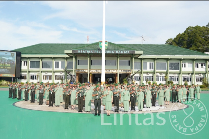 Guna menindaklanjuti Apel Komandan Satuan (Dansat) Terpusat dan untuk mengevaluasi pelaksanaan tugas selama TA 2023, serta memberikan pembekalan dan arahan guna mendukung pencapaian tugas, Kodam XVII/Cenderawasih menggelar Apel Dansat tersebar Kodam XVII/Cen TA 2024 yang dipimpin langsung oleh Pangdam XVII/Cen Mayjen TNI Izak Pangemanan, M.Han didampingi Ketua Persit KCK Daerah XVII/Cenderawasih Ny. Juliet Izak Pangemanan, bertempat di Aula Tonny A Rompis Makodam XVII/Cenderawasih, Senin (27/5/2024).