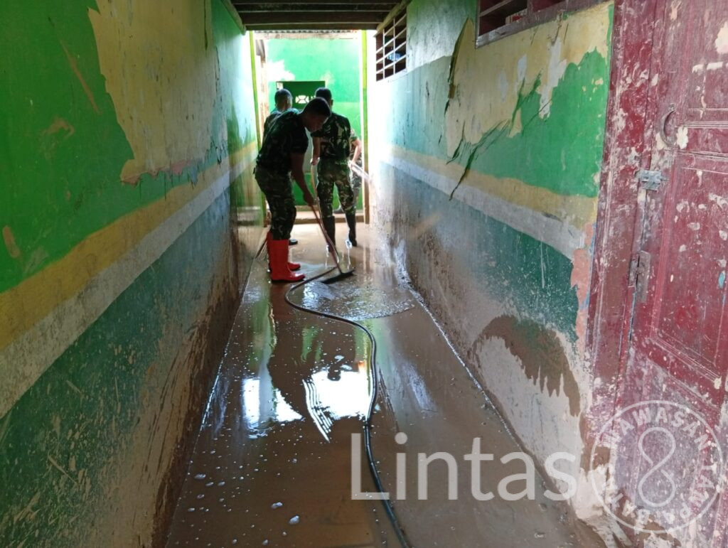 Gotong royong dilakukan dengan membersihkan material tanah dan lumpur yang masuk ke area sekolah, sekaligus menata kembali peralatan pendidikan yang terdampak bencana, sehingga lingkungan sekolah menjadi bersih, aman, dan nyaman bagi siswa serta tenaga pendidik.