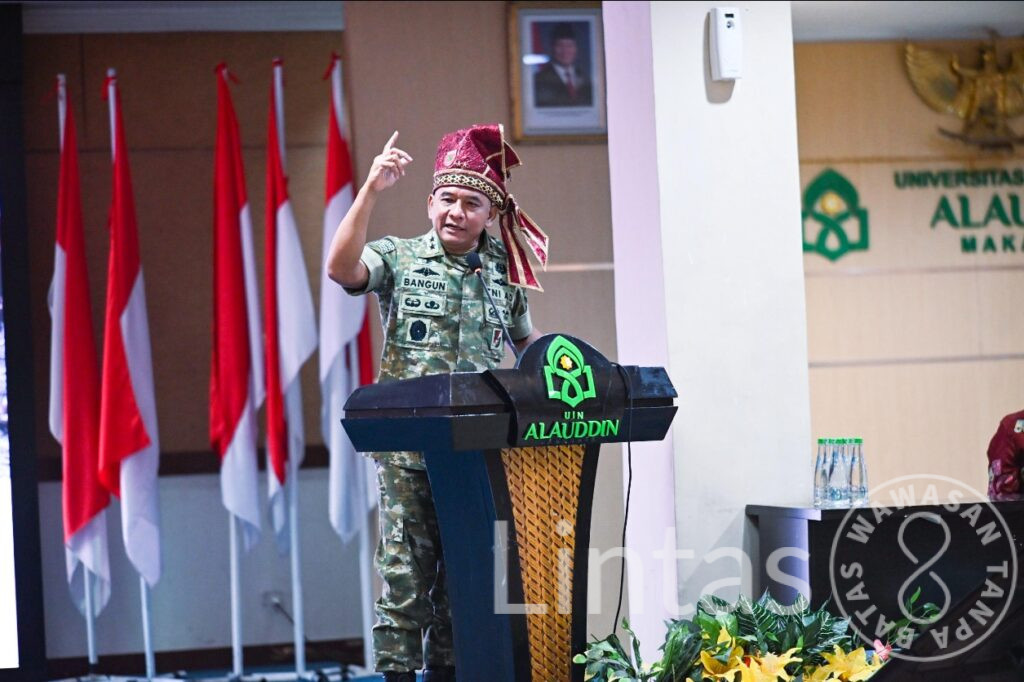Makassar – Pangdam XIV/Hasanuddin Mayjen TNI Bangun Nawoko memberikan Kuliah Umum dengan materi “Konflik Global dan Dampaknya bagi keamanan nasional”, bertempat di Ruang Rapat Senat, Gedung Rektorat, Lt. IV Kampus II Universitas Islam Negeri (UIN) Alauddin, Jl. Sultan Alauddin, Kota Makassar. Kamis, (16/4/2026).