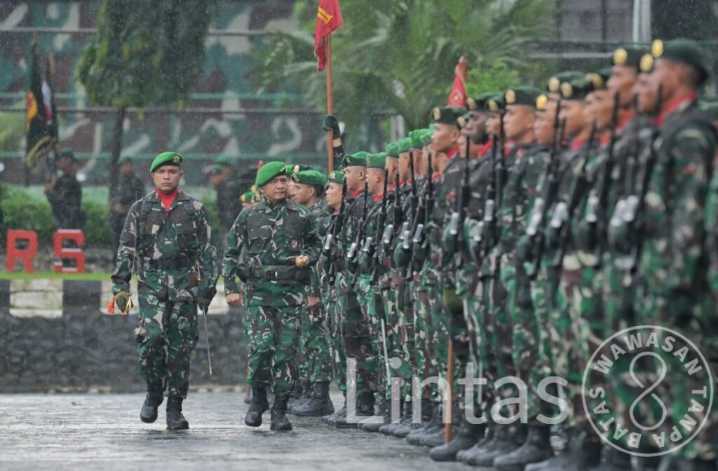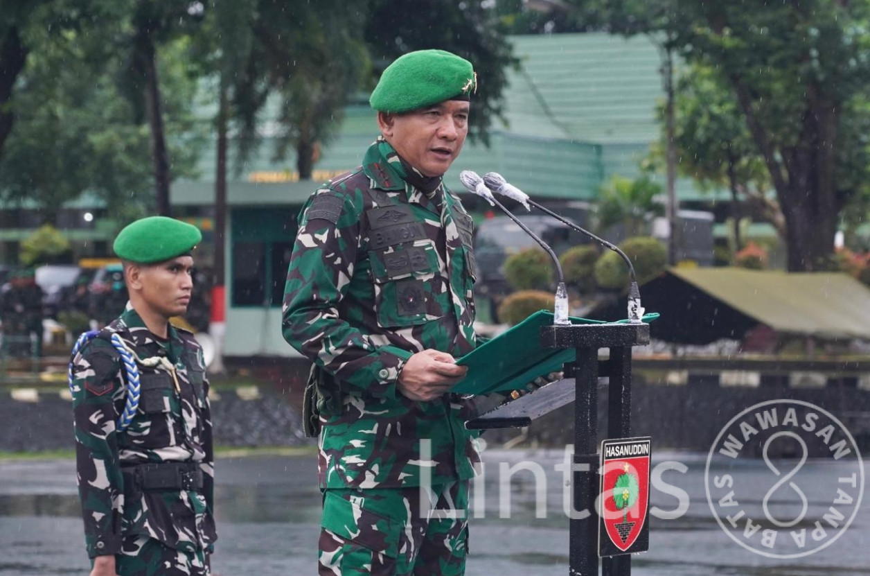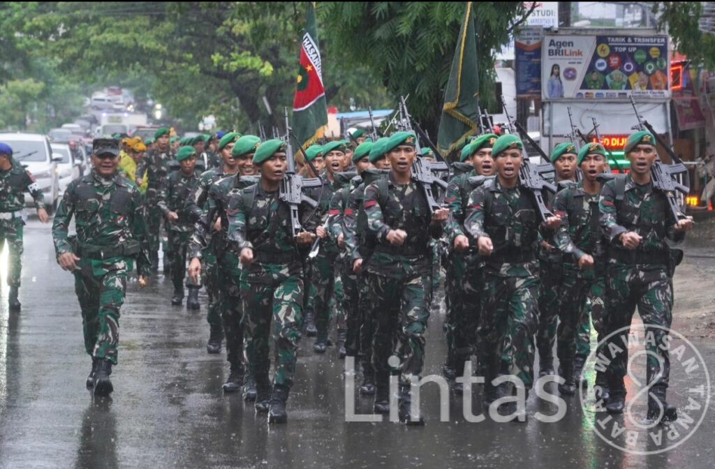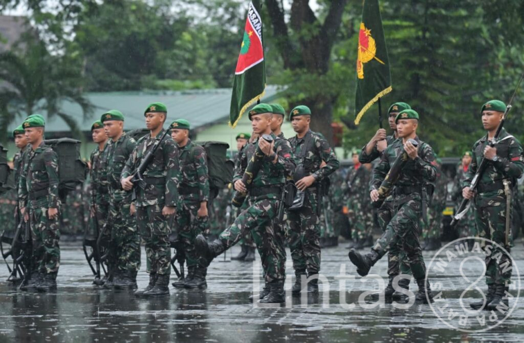 Makassar – Dibawah guyuran hujan deras dan cuaca tak bersahabat, semangat juang prajurit Infanteri tetap berkobar saat Pangdam XIV/Hasanuddin Mayjen TNI Bangun Nawoko mendampingi pelaksanaan Pleton Beranting (Tonting) Yudha Wastu Pramuka Jaya (YWPJ) yang dilanjutkan dengan Upacara Hari Juang Infanteri ke-77 Tahun 2025 di Lapangan M. Yusuf Makodam XIV/Hasanuddin, Jl. Urip Sumoharjo, Kota Makassar. Jumat, (19/12/2025).