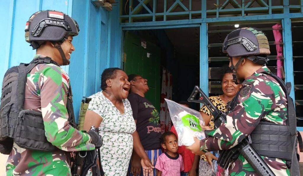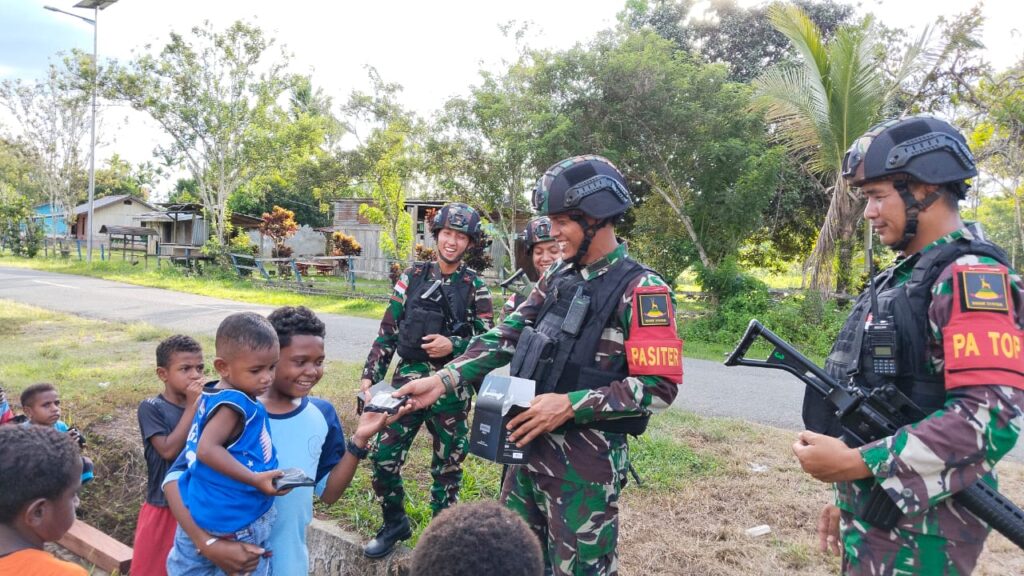 Pada kesempatan itu, Pasiter (Perwira Seksi Teritorial) Letda Inf As’ari dan Patop (Perwira Topografi) Letda Ctp Dwi Iswahyudi beserta personil Satgas dari Pos Senggi berkeliling kampung mengunjungi warga dari rumah ke rumah, bahkan selama perjalan personil Satgas pun meluangkan waktunya untuk bermain bersama anak-anak Kampung.
