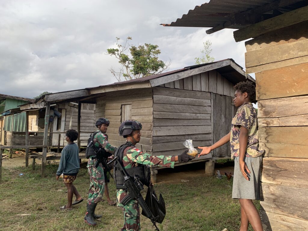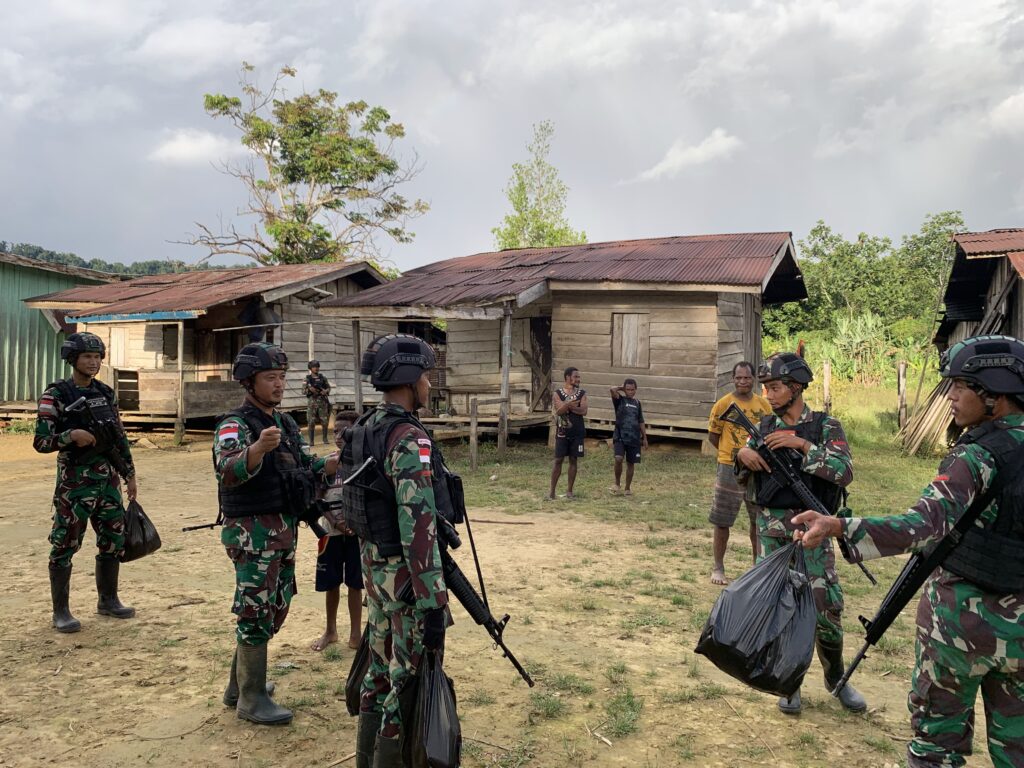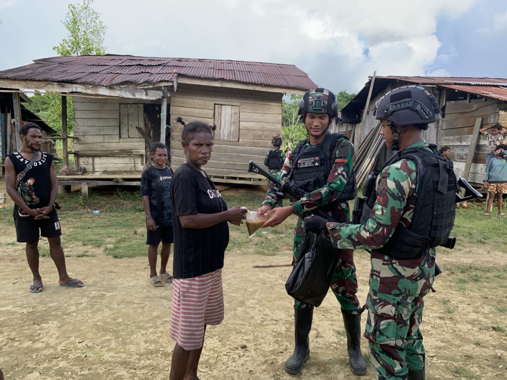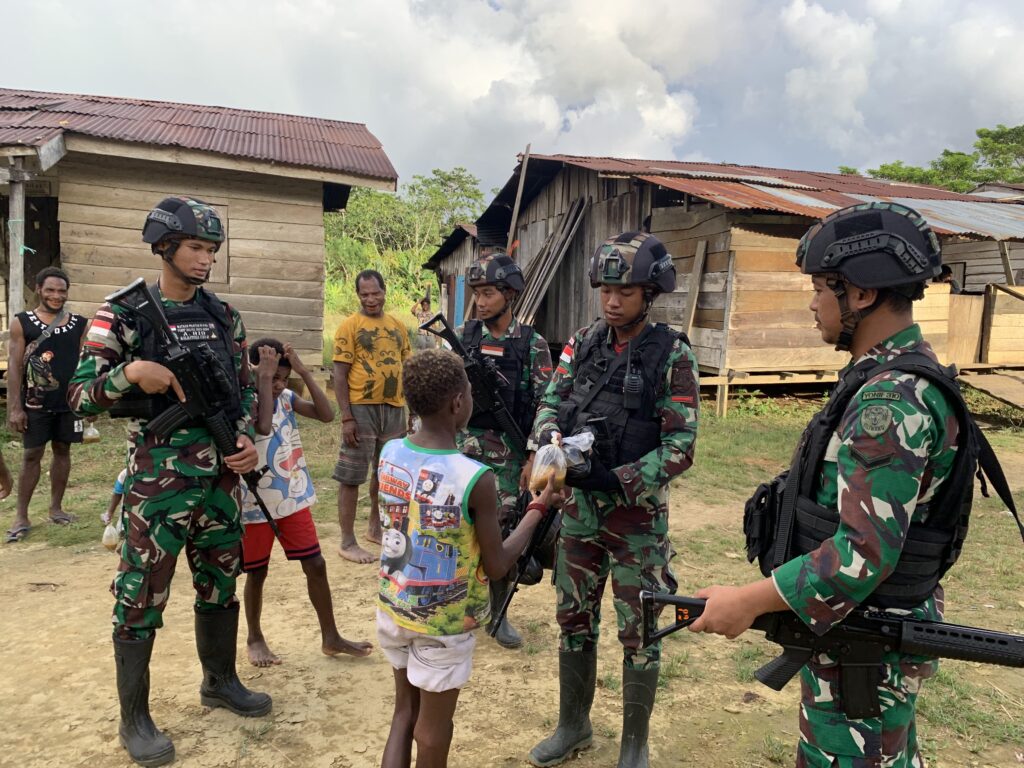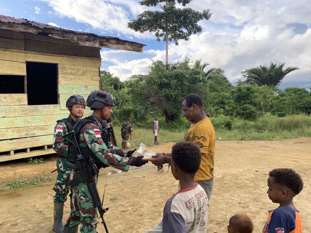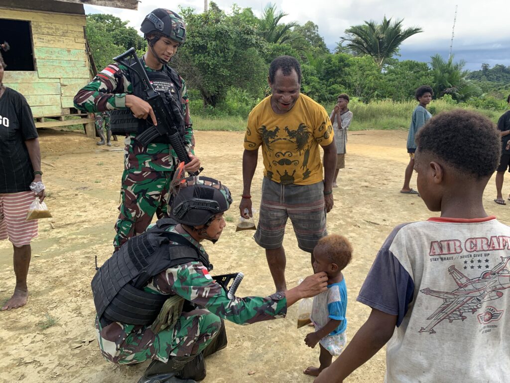 “Warga terlihat senang dengan apa yang kami lakukan, terlebih anak-anak di sekitaran kampung tampak raut bahagia dan penuh senyum keceriaan,” tambah Dansatgas.