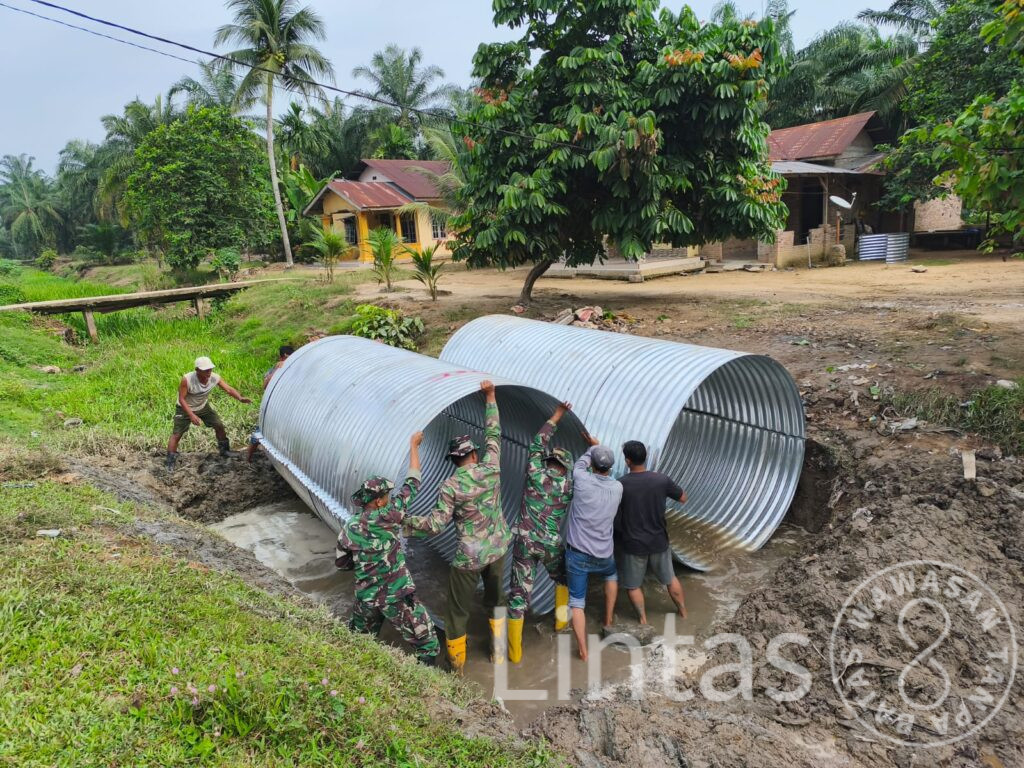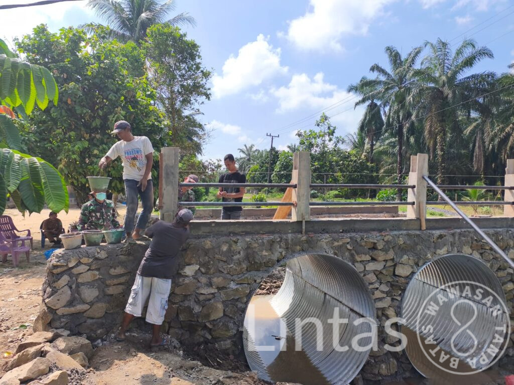 Pembangunan jembatan sepanjang tujuh meter tersebut dilaksanakan oleh personel Kodim 0209/Labuhanbatu bersama masyarakat setempat melalui semangat gotong royong. Dengan memanfaatkan peralatan sederhana seperti cangkul, sekop, angkong, dan linggis, seluruh tahapan pekerjaan dapat diselesaikan dengan optimal hingga jembatan berdiri kokoh.