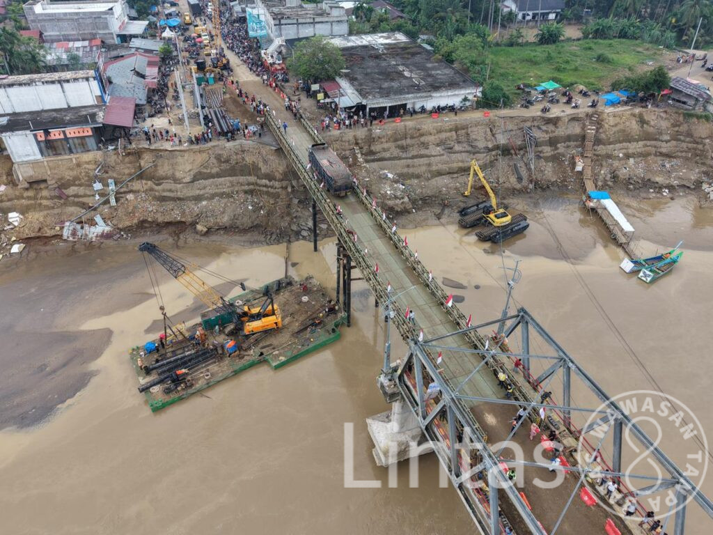 BIREUN – Jembatan Bailey di Kutablang yang berada pada jalur nasional Medan–Banda Aceh, Kabupaten Bireuen, Provinsi Aceh, telah rampung dikerjakan dan dinyatakan siap difungsikan mulai Sabtu, 27 Desember 2025.