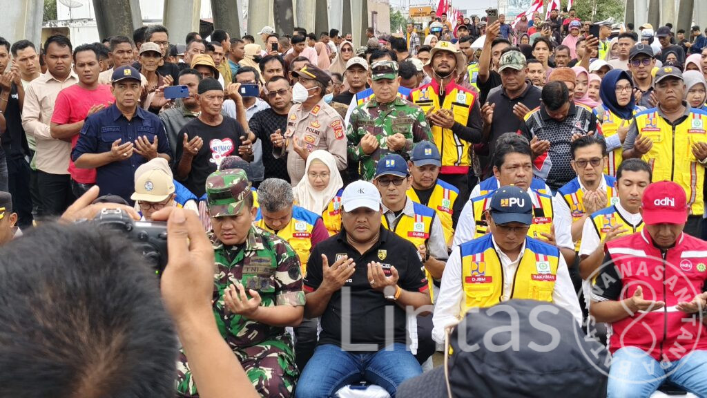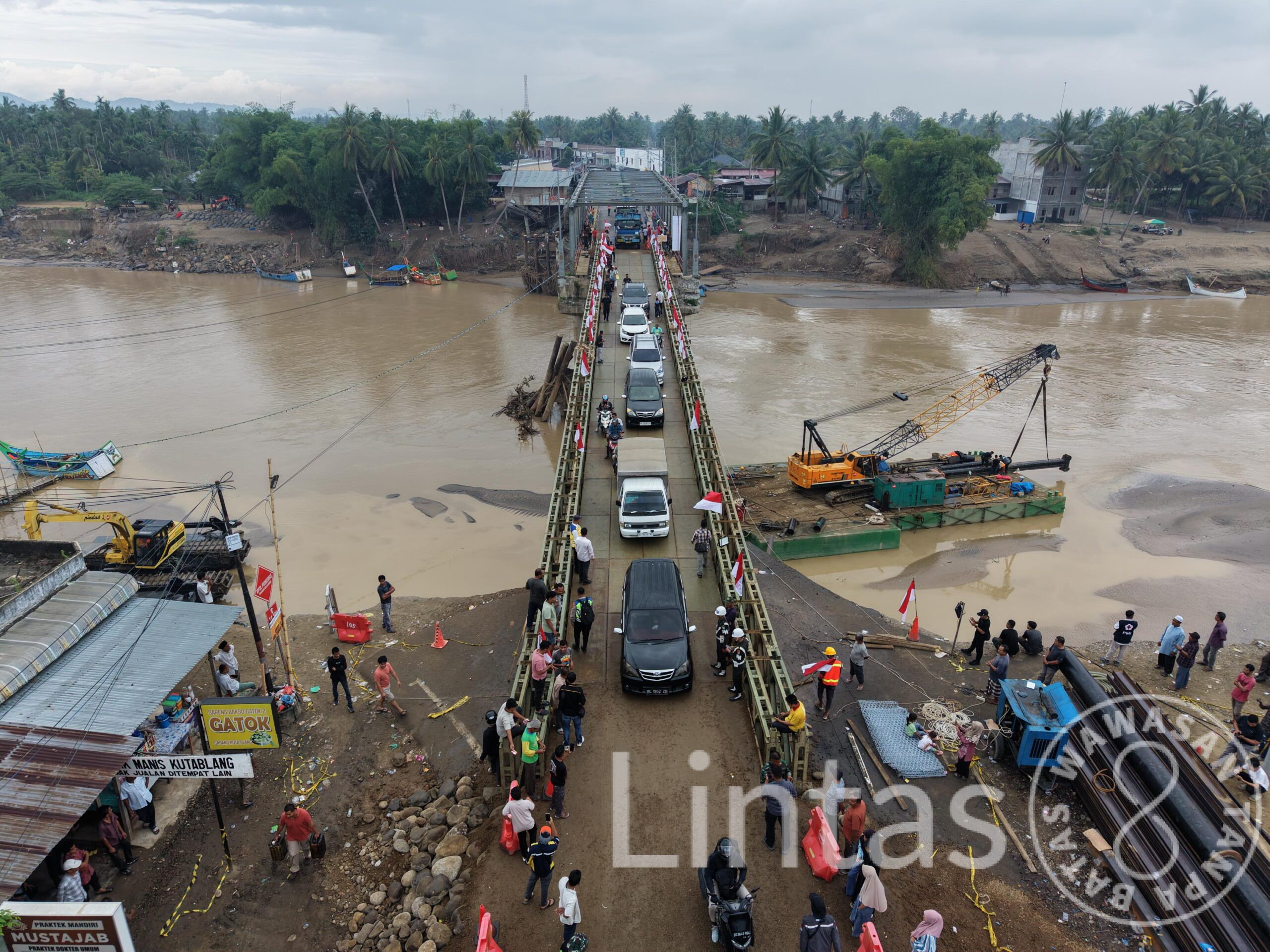 Jembatan darurat tersebut diresmikan melalui prosesi adat peusijuk sebagai simbol doa dan harapan agar jembatan dapat memberikan manfaat serta keselamatan bagi seluruh pengguna jalan.