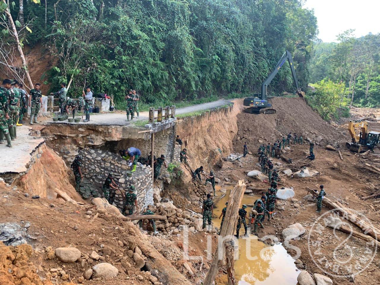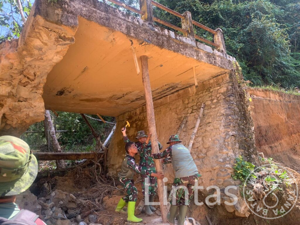 Dalam proses perbaikan, Satgas Gulbencal Kodam I/BB mengerahkan dua unit alat berat berupa excavator long arm dan excavator standar. Kegiatan ini melibatkan personel Yon TP 905/TS, Yon TP 908/GD, Denzibang Sibolga, serta Kodim 0212/Tapanuli Tengah guna mempercepat penyelesaian pekerjaan di lapangan.