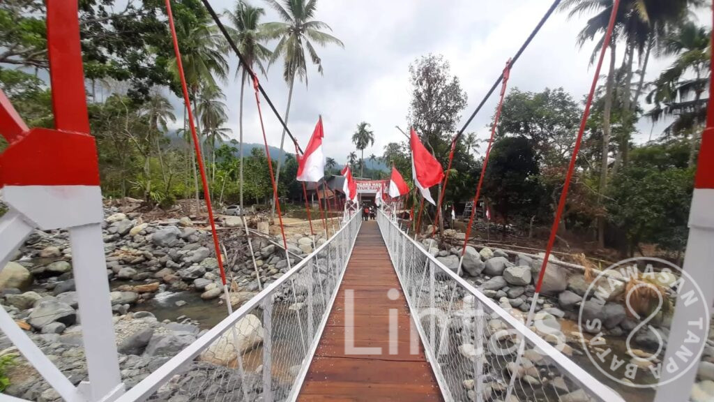 PADANG, tniad.mil.id – Jembatan Gantung Merah Putih di Kampung Guo, RT 01/RW 06, Kelurahan Kuranji, Kota Padang, resmi digunakan masyarakat setelah diresmikan Presiden Prabowo Subianto secara daring, Senin (9/3/2026). Kehadiran jembatan tersebut disambut gembira warga karena memperlancar akses menuju berbagai fasilitas penting, termasuk sekolah, masjid, dan pusat aktivitas ekonomi masyarakat.