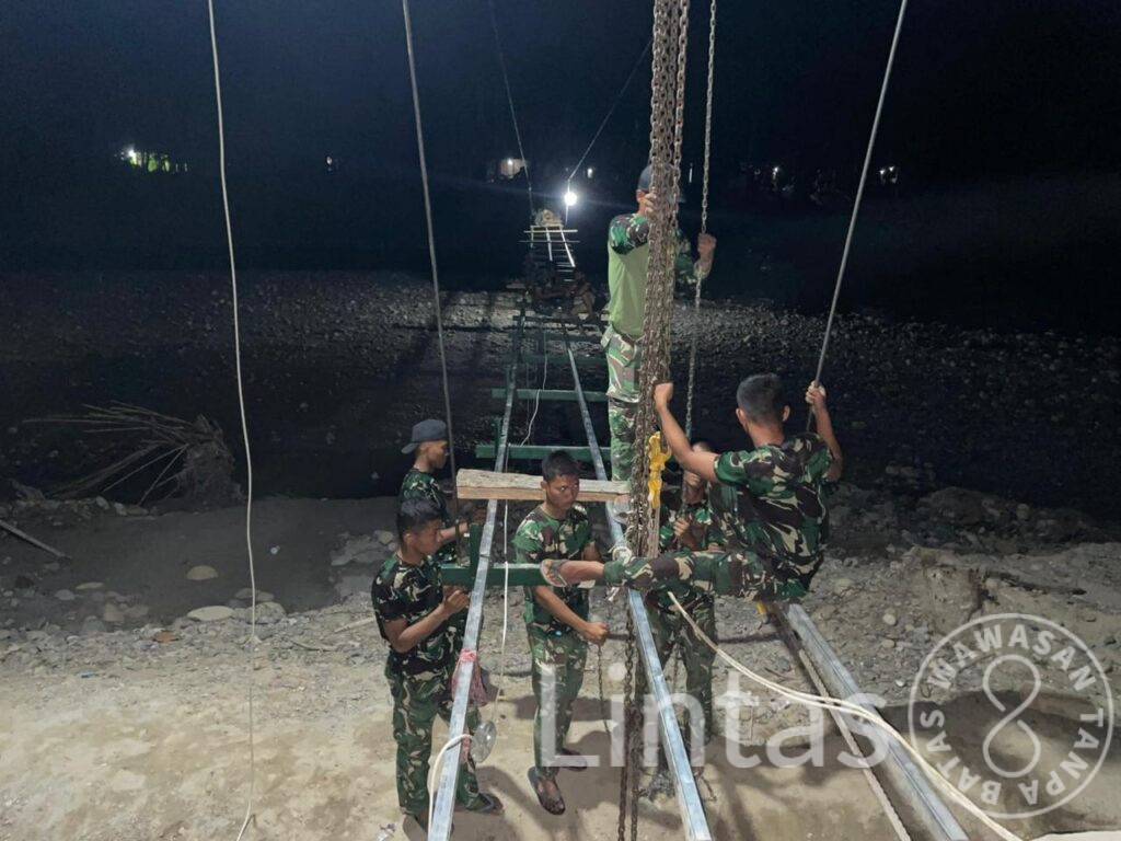 Pembangunan jembatan dikerjakan oleh personel Satgas Gulbencal Kodam I/Bukit Barisan bersama jajaran Kodim 0211/Tapanuli Tengah. Personel Koramil 01/Barus, prajurit Yon TP 905, Yon TP 906, serta Yonif 125/Si’mbisa juga turut bekerja secara terpadu di lapangan.