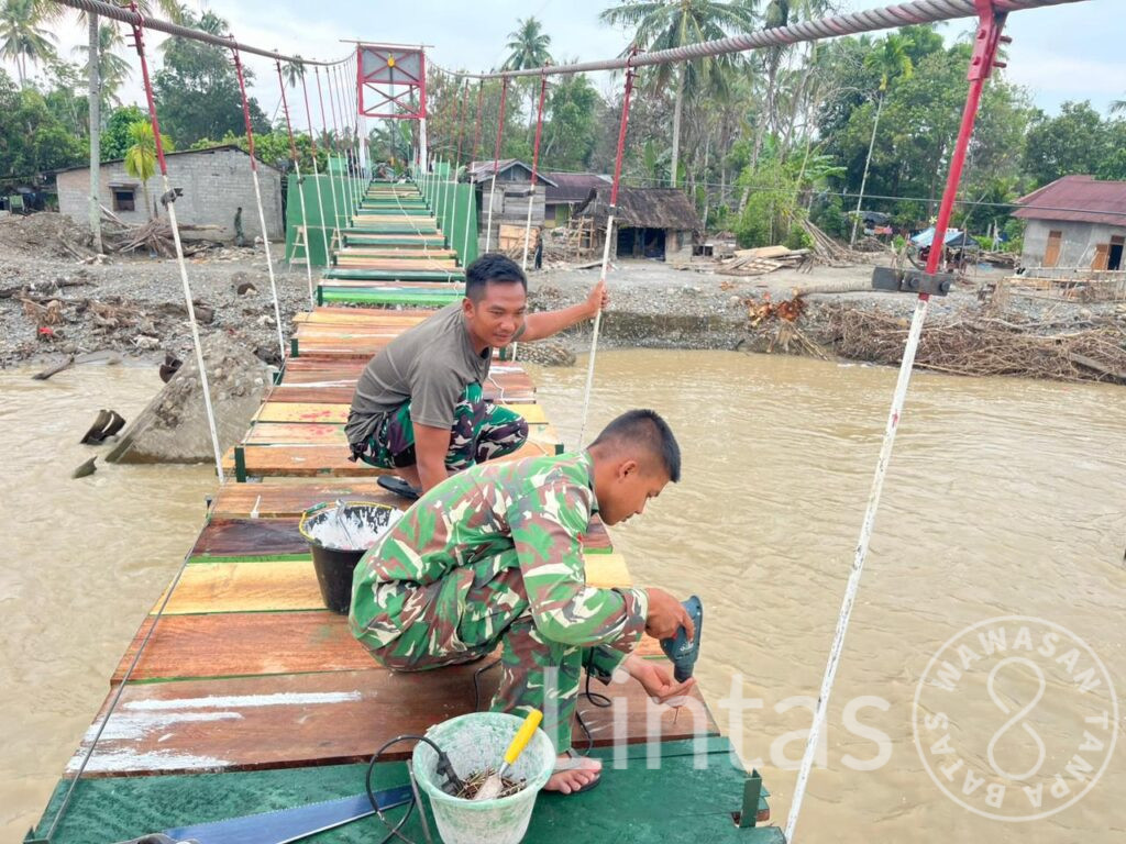 TAPANULI TENGAH, tniad.mil.id – Satgas Penanggulangan Bencana Alam (Gulbencal) Kodam I/Bukit Barisan merampungkan pembangunan Jembatan Perintis Garuda di Desa Kampung Mudik, Kecamatan Barus, Kabupaten Tapanuli Tengah, Minggu (15/3/2026). Jembatan sepanjang 90 meter dengan lebar 1,20 meter tersebut kini telah rampung 100 persen dan siap dimanfaatkan masyarakat.