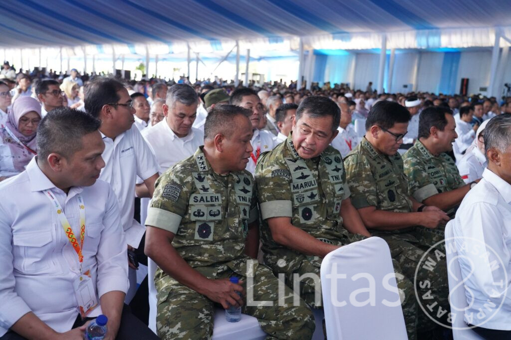 Acara tersebut juga dihadiri jajaran menteri dan wakil menteri Kabinet Merah Putih, pimpinan lembaga negara, Jaksa Agung, Kapolri, Wakil Panglima TNI, para Kepala Staf Angkatan, serta jajaran pimpinan BUMN yang terlibat langsung dalam program swasembada pangan nasional.
