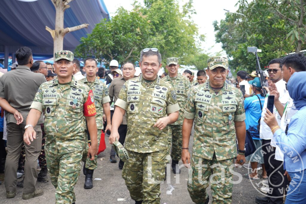 KARAWANG, tniad.mil.id — Kepala Staf Angkatan Darat (Kasad) Jenderal TNI Maruli Simanjuntak, M.Sc., menghadiri Panen Raya yang dirangkaikan dengan pengumuman capaian swasembada pangan nasional bersama Presiden Republik Indonesia Prabowo Subianto di Cilebar, Kabupaten Karawang, Jawa Barat, Rabu (7/1/2026).