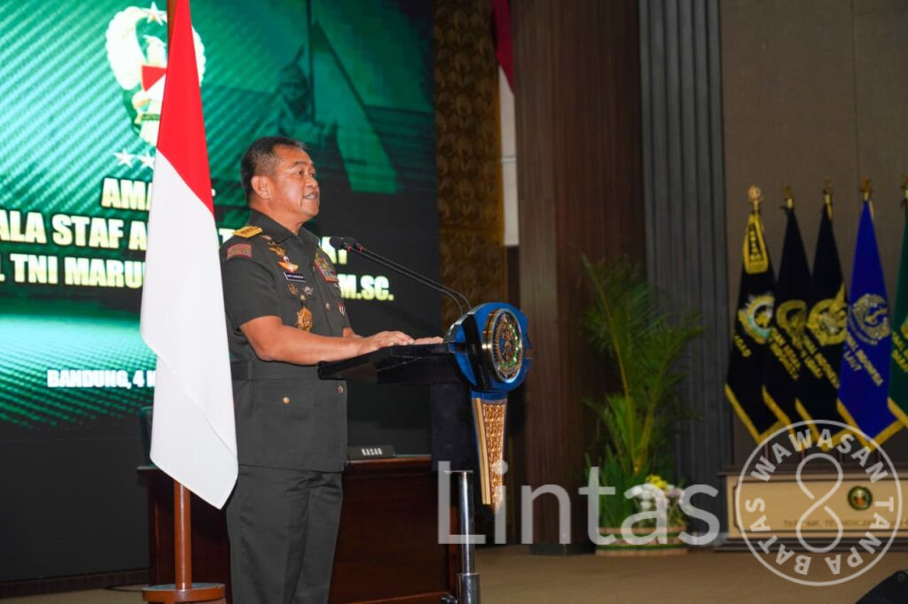 BANDUNG, tniad.mil.id – Kepala Staf Angkatan Darat (Kasad) Jenderal TNI Maruli Simanjuntak, M.Sc., menegaskan bahwa kunci keberhasilan seorang perwira terletak pada cara mereka menjalankan setiap penugasan dengan baik. Hal tersebut disampaikannya saat memberikan amanat pada upacara penutupan Pendidikan Reguler (Dikreg) LXVI Sekolah Staf dan Komando Angkatan Darat (Seskoad) Tahun Ajaran 2025, di Gedung Prof. Dr. Satrio, Seskoad, Bandung, Selasa (4/11/2025).