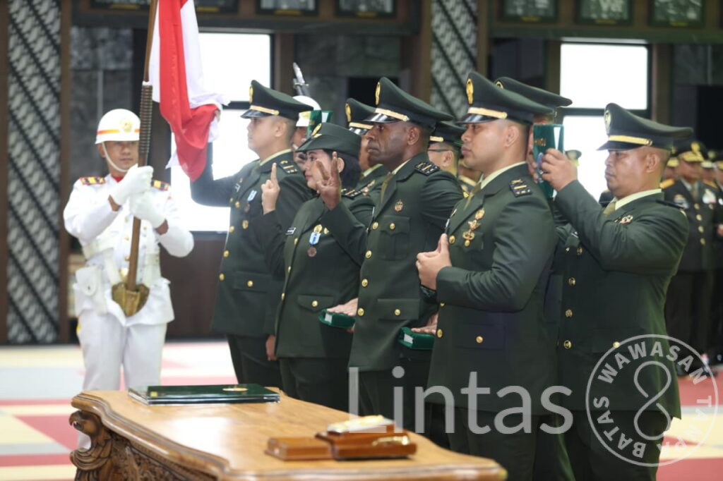 JAKARTA, tniad.mil.id – Kepala Staf Angkatan Darat (Kasad) Jenderal TNI Maruli Simanjuntak, M.Sc., melantik 20 Perwira Khusus Tentara Nasional Indonesia Angkatan Darat (TNI AD) di Markas Besar Angkatan Darat, Jakarta, Kamis (5/2/2026). Para perwira tersebut telah menempuh Pendidikan Pembentukan Pertama Perwira Khusus (Diktukpasus) di Sekolah Calon Perwira Angkatan Darat (Secapa AD).