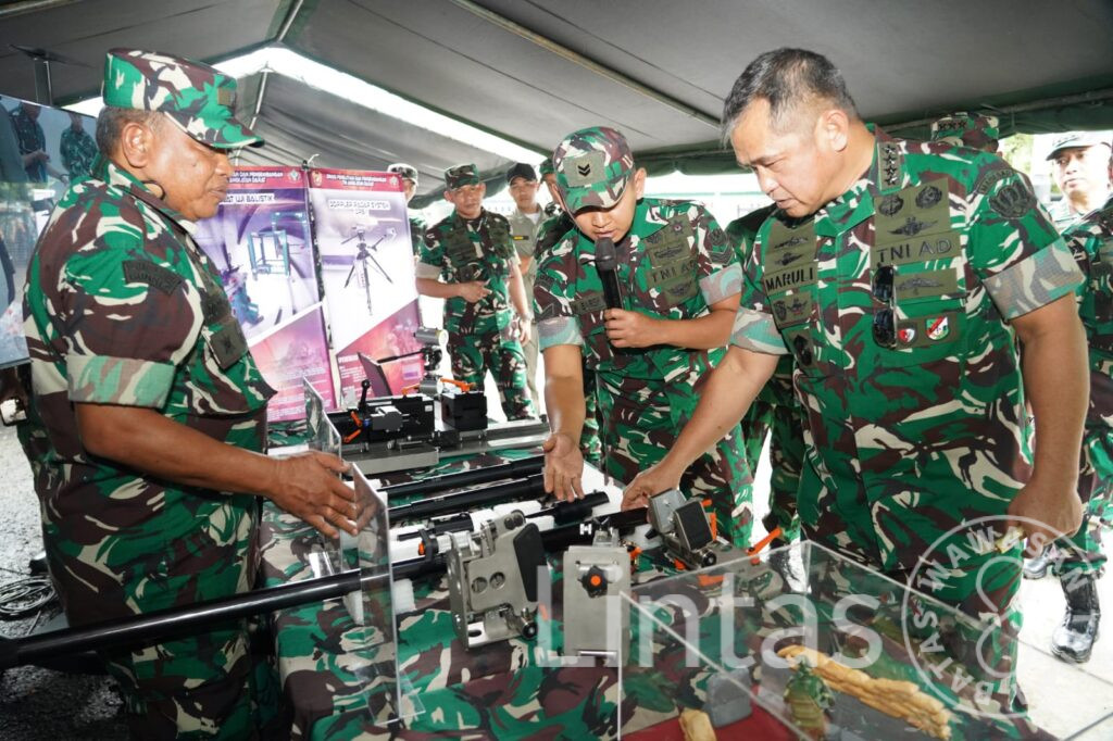 JAKARTA, tniad.mil.id – Kepala Staf Angkatan Darat (Kasad) Jenderal TNI Maruli Simanjuntak, M.Sc., meninjau display inovasi hasil Penelitian dan Pengembangan Pertahanan (Litbanghan) TNI Angkatan Darat yang ditampilkan Dinas Penelitian dan Pengembangan TNI AD (Dislitbangad) di Resimen Latihan Tempur (Menlatpur) Kostrad, Sanggabuana, Karawang, Jawa Barat, Kamis (22/1/2026). Peninjauan ini dititikberatkan pada pemanfaatan hasil Litbanghan untuk memperkuat sistem latihan dan mendukung kesiapan operasi prajurit TNI AD.