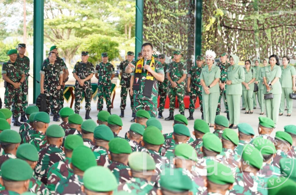 SORONG, tniad.mil.id – Kepala Staf Angkatan Darat (Kasad) Jenderal TNI Maruli Simanjuntak, M.Sc., menegaskan kesiapan Batalyon Infanteri Teritorial Pembangunan (Yonif TP) sebagai kekuatan baru TNI AD dalam mendukung percepatan program pemerintah dan membantu masyarakat, terutama pada penanganan bencana dan pemenuhan kebutuhan dasar di berbagai daerah. Hal tersebut disampaikan Kasad saat melakukan kunjungan kerja di Sorong, Papua Barat Daya, Selasa (9/12/2025).
