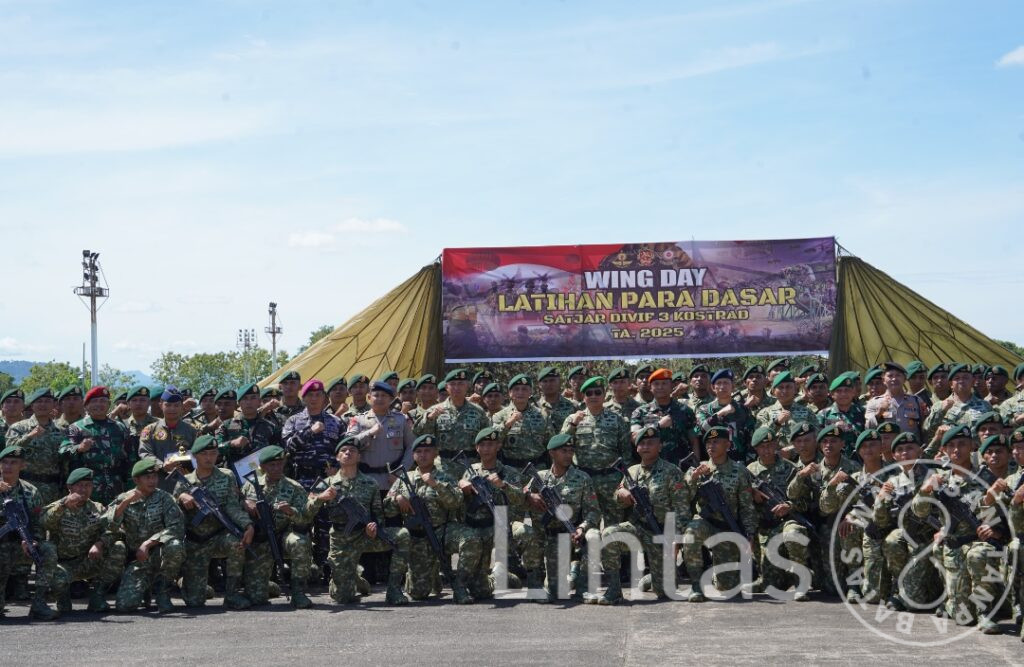 Maros – Kepala Staf Kodam (Kasdam) XIV/Hasanuddin, Brigjen TNI Sugeng Hartono, S.E., M.M., menghadiri Upacara Penutupan Wing Day Latihan Para Dasar Satuan Jajaran Divisi Infanteri 3 Kostrad TA. 2025, bertempat di Lapangan Galaktika Lanud Sultan Hasanuddin, Kab. Maros. Kamis, (30/10/2025).