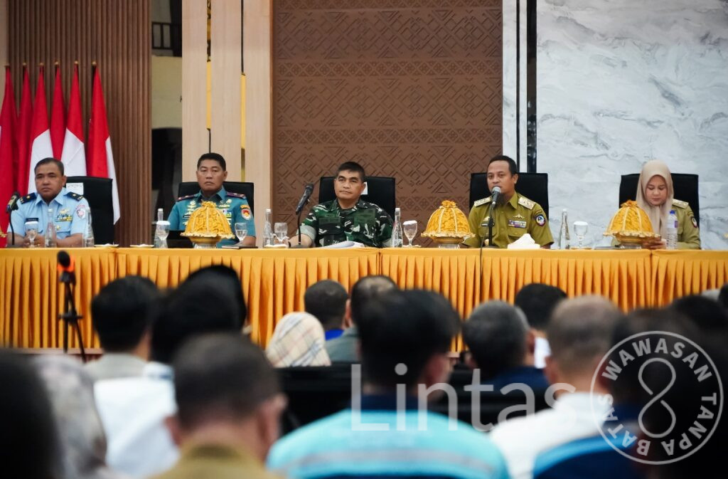 Makassar – Kepala Staf Kodam XIV/Hasanuddin Brigjen TNI Sugeng Hartono, S.E., M.M., menghadiri Rapat Koordinasi Forum Komunikasi Pimpinan Daerah (Forkopimda) Provinsi Sulawesi Selatan bersama para Bupati/Wali Kota serta instansi vertikal terkait dalam rangka tindak lanjut arahan Presiden Republik Indonesia, bertempat di Gedung Pola Kantor Gubernur Sulsel, Jl. Urip Sumoharjo, Kota Makassar. Senin, (09/2/2026).