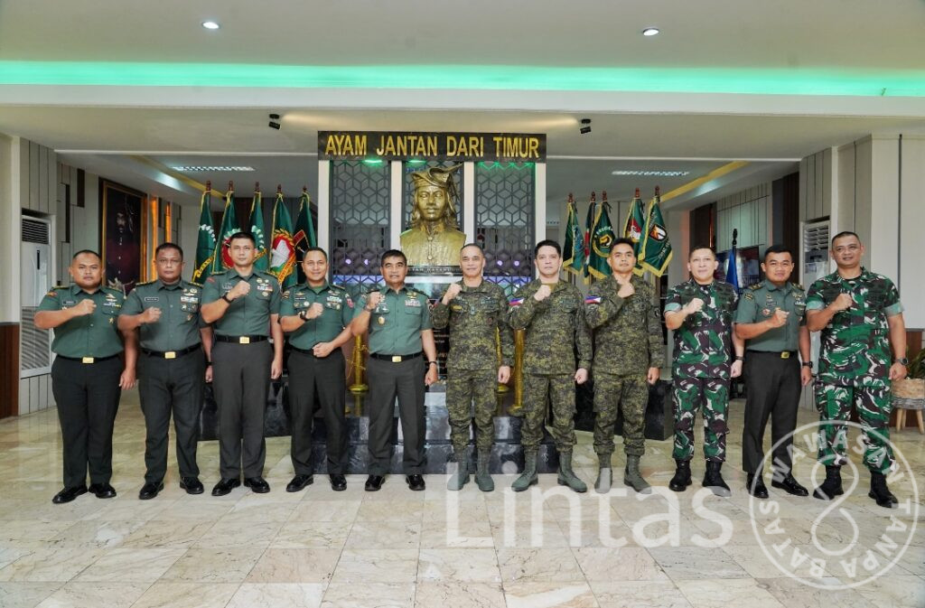 Makassar – Kasdam XIV/Hasanuddin Brigjen TNI Sugeng Hartono, S.E., M.M., menerima kunjungan Tim Senior Officer Visit Programme (SOVP) Philindo Strike V/2025 yang dipimpin Brigadir Jenderal Ricky P. Bunayong beserta prajurit Angkatan Darat Filipina, bertempat di Ruang Kehormatan Makodam, Jl. Urip Sumoharjo, Kota Makassar, Rabu (27/8/2025).