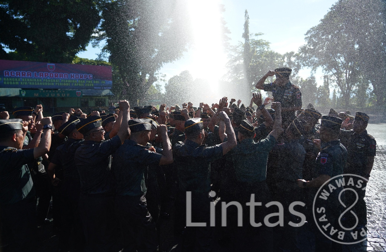 Makassar – Pangdam XIV/Hasanuddin Mayjen TNI Bangun Nawoko memimpin Acara Laporan Korps Kenaikan Pangkat Perwira dan PNS Gol. III Periode 1 April 2026 di Lapangan M. Yusuf, yang dilanjutkan dengan acara syukuran di Balai Pertemuan Hasanuddin (BPH) Makodam, Jl. Urip Sumoharjo, Kota Makassar, Rabu (1/4/2026).
