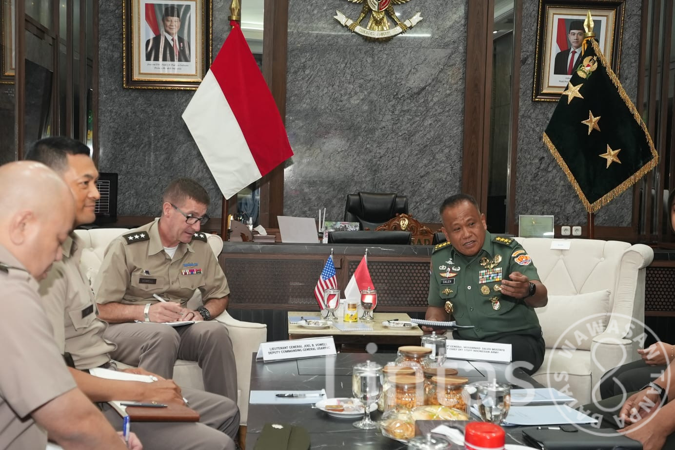 JAKARTA, tniad.mil.id – Wakil Kepala Staf Angkatan Darat (Wakasad) Letjen TNI Muhammad Saleh Mustafa menerima kunjungan Deputy Commanding General United States Army Pacific (USARPAC), Lieutenant General Joel B. Vowell, di Markas Besar Angkatan Darat (Mabesad), Jakarta, Selasa (18/11/2025). Pertemuan ini menjadi momentum penting yang menegaskan semakin solidnya hubungan kerja sama militer antara TNI Angkatan Darat dan Angkatan Darat Amerika Serikat, khususnya di kawasan Indo-Pasifik.