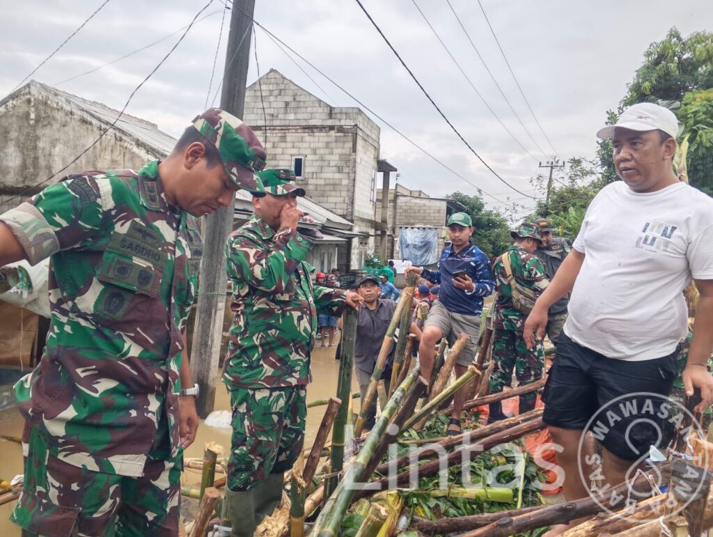 Sementara itu, di wilayah Bekasi, prajurit Yonif TP 843/PYV Kodam Jaya bersama Babinsa, masyarakat setempat, serta unsur terkait lainnya bahu-membahu melaksanakan penanganan tanggul sungai yang jebol di Desa Pantai Bakti, Kecamatan Muara Gembong, Kabupaten Bekasi. Jebolnya tanggul tersebut mengakibatkan banjir yang merendam permukiman warga.