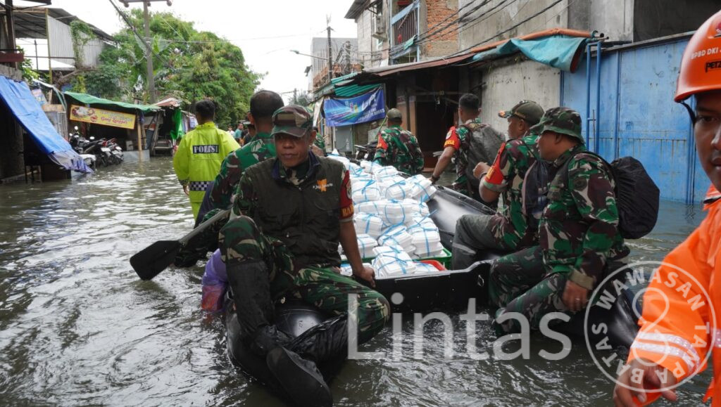 Banjir yang terjadi akibat curah hujan tinggi dalam beberapa hari terakhir menyebabkan meluapnya aliran kali dan merendam permukiman warga. Menyikapi kondisi tersebut, personel Kodim 0502/Jakarta Utara dan unsur BKO dari Yonif TP 843 PYV dan Yonif TP 899/BSG segera turun ke lapangan untuk membantu evakuasi warga serta penanganan dampak banjir.