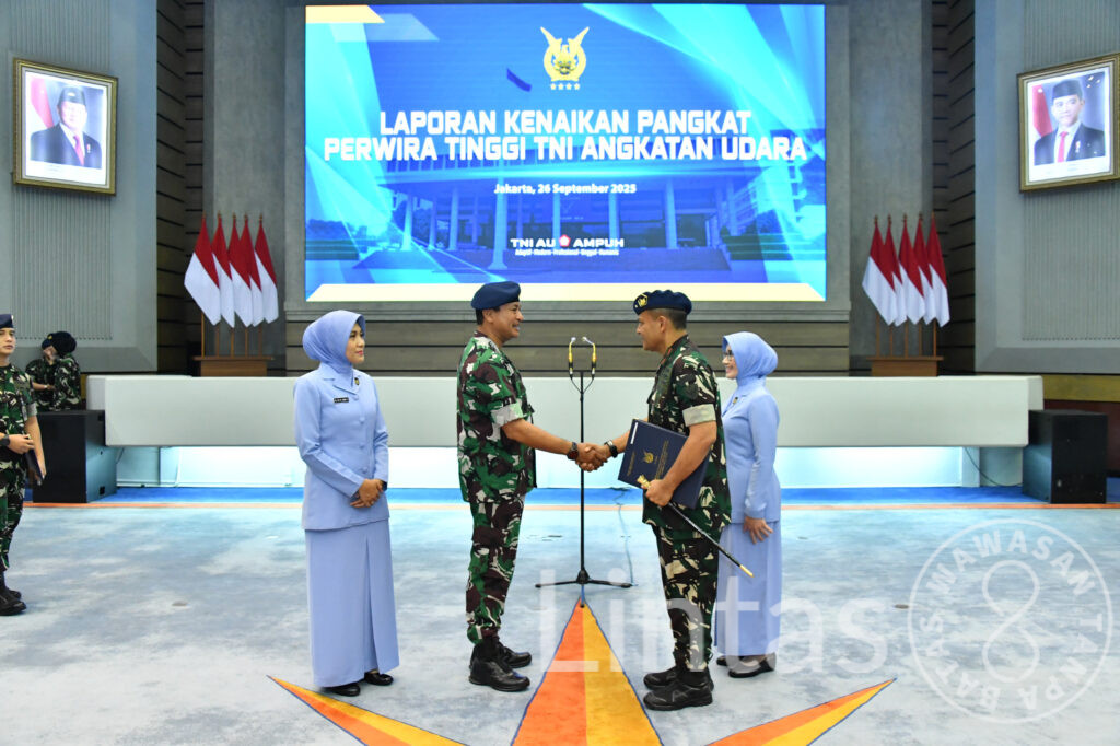 Komandan Lanud Husein Sastranegara, Marsma TNI MD. Irman Fathurrahman, S.E., M.M., didampingi Ketua PIA Ardhya Garini Cabang 4/ D.I Lanud Husein Sastranegara Ny Ayu Irman mengikuti acara Laporan Korps Kenaikan Pangkat Perwira Tinggi (Pati) TNI Angkatan Udara bertempat di Auditorium Denma Mabesau, Cilangkap, Jumat (26/9).