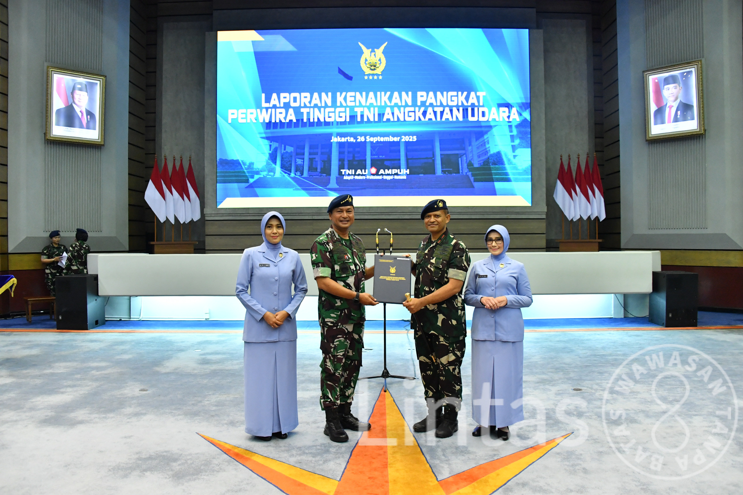 Komandan Lanud Husein Sastranegara, Marsma TNI MD. Irman Fathurrahman, S.E., M.M., didampingi Ketua PIA Ardhya Garini Cabang 4/ D.I Lanud Husein Sastranegara Ny Ayu Irman mengikuti acara Laporan Korps Kenaikan Pangkat Perwira Tinggi (Pati) TNI Angkatan Udara bertempat di Auditorium Denma Mabesau, Cilangkap, Jumat (26/9).