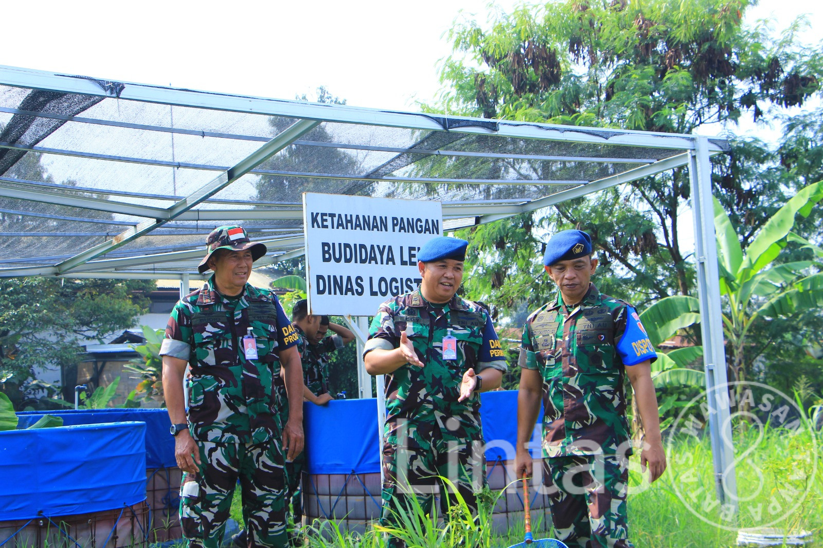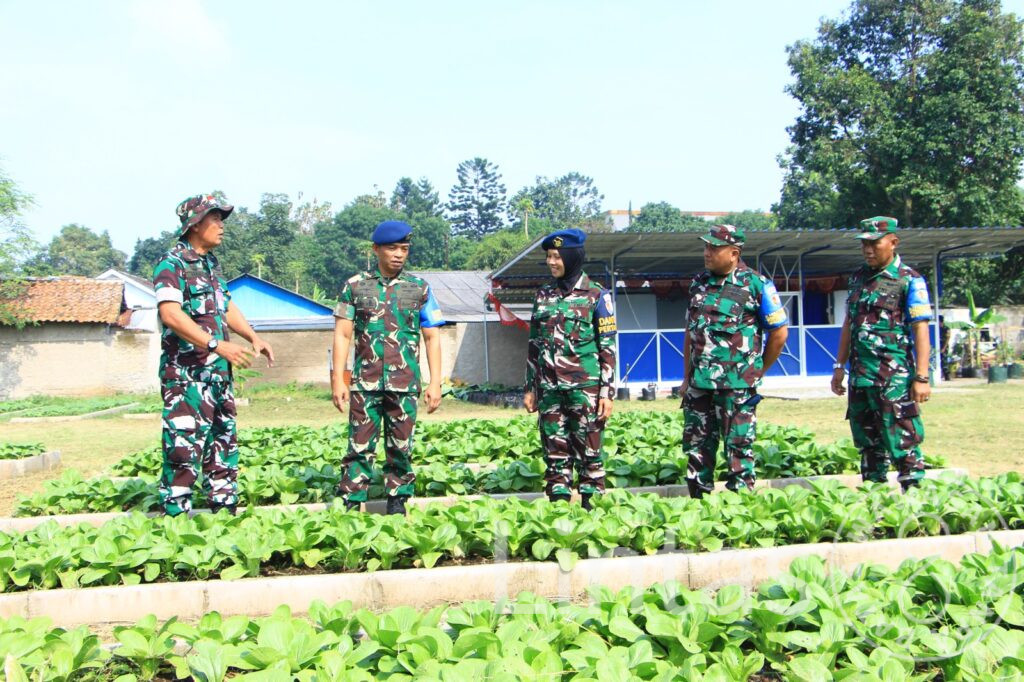 Kepala Dinas Teritorial Lanud Husein Sastranegara Letkol Pas Dr. Rudiyanto D. S.T., M.I.Pol., M.A., mewakili Komandan Lanud Marsma TNI MD. Irman Fathurrahman, S.E., M.M., meninjau kegiatan Kompi Produksi di area food estate Lanud, Selasa (21/10).
