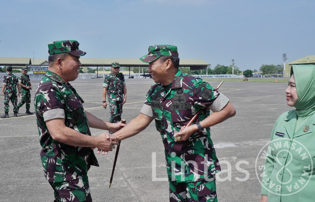 Makassar – Pangdam XIV/Hasanuddin, Mayjen TNI Windiyatno, bersama Ketua Persit KCK PD XIV/Hasanuddin, Ny. Infita Windiyatno menyambut kedatangan Pangkogabwilhan II, Marsekal Madya TNI M. Khairil Lubis didampingi Ketua IKKT PWA Cabang BS III Ny. Sondang Khairil Lubis dan rombongan, di Baseops Lanud Sultan Hasanuddin, Kec. Mandai, Kabupaten Maros, Sulawesi Selatan. Selasa, (22/07/2025).