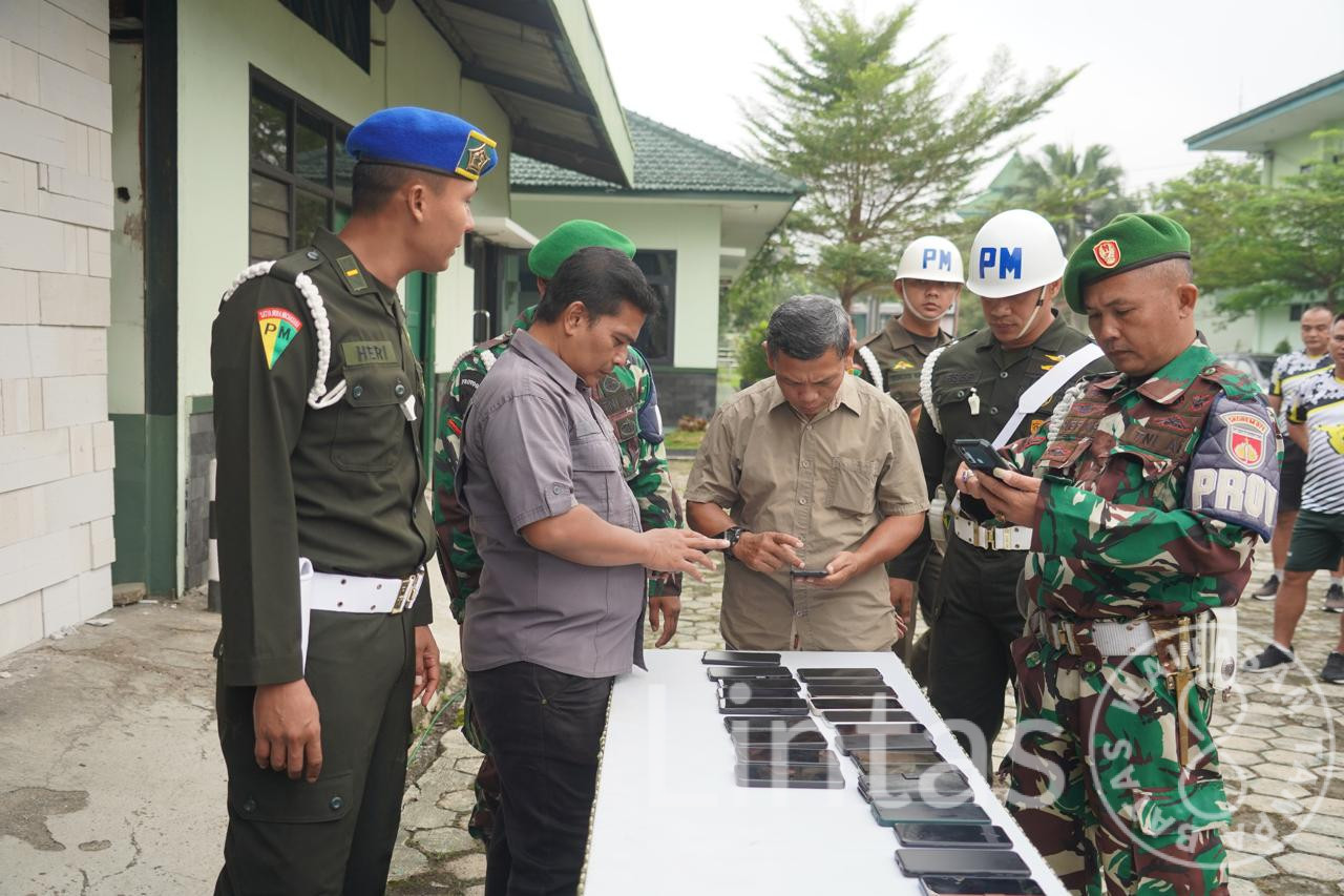 Banyumas – Maraknya judi online akhir-akhir ini, Korem 071/Wijayakusuma melaksanakan langkah preventif dengan melakukan pemeriksaan intensif terhadap penggunaan HP seluler kepada para Prajurit dan PNSnya usai dilaksanakannya Apel Pagi, Kamis (27/6/2024) di Lapangan Apel Makorem 071/Wijayakusuma, Sokaraja, Banyumas