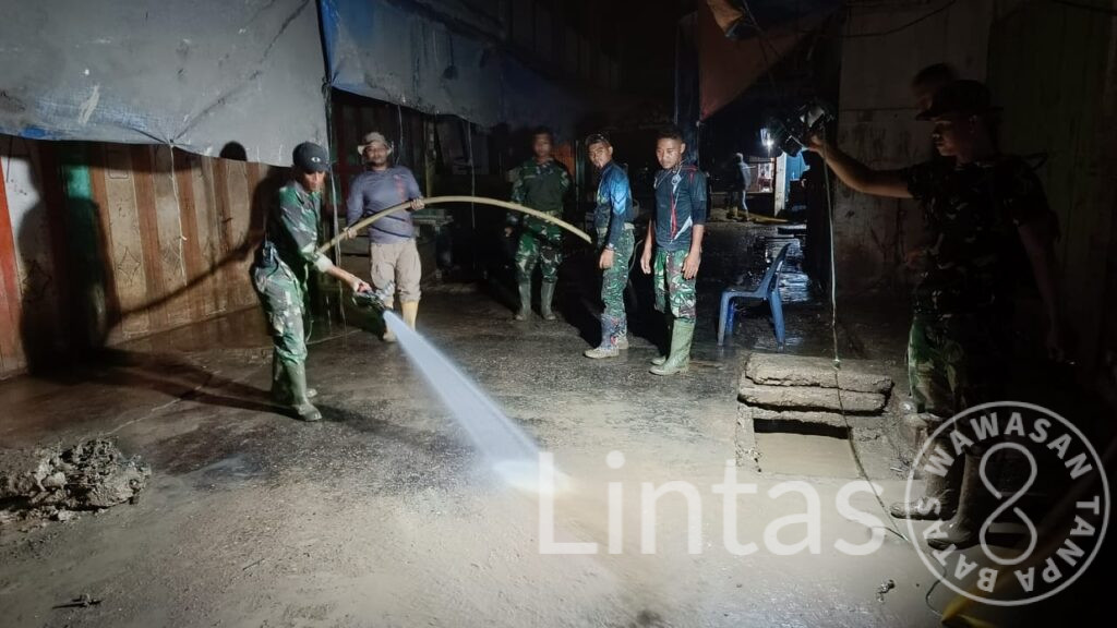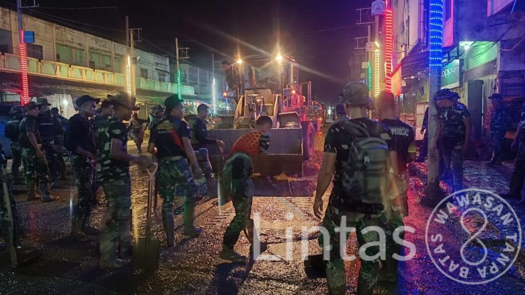 Tanpa mengenal lelah, prajurit bergotong royong mengeruk lumpur, menyapu sampah, serta membuka saluran air yang tersumbat. Medan yang licin dan gelap tidak menyurutkan semangat prajurit dalam menjalankan tugas kemanusiaan demi membantu masyarakat bangkit pascabencana.