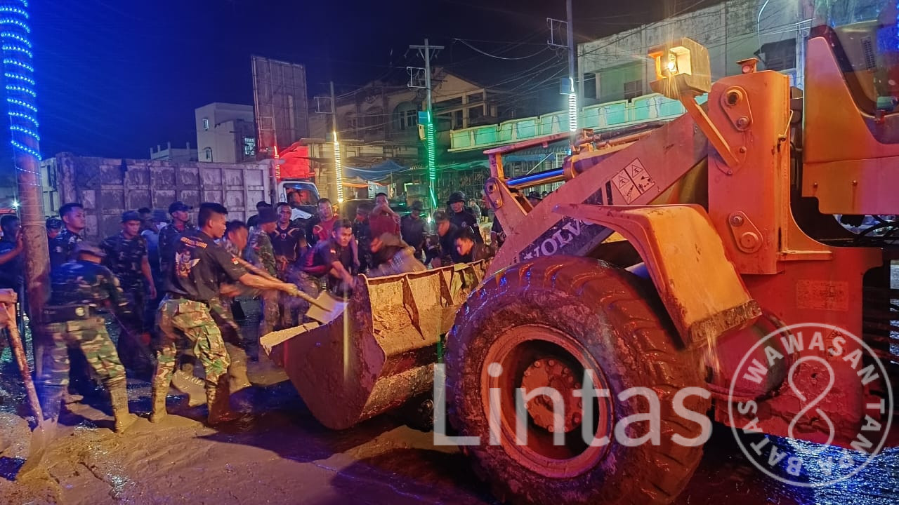 Tanpa mengenal lelah, prajurit bergotong royong mengeruk lumpur, menyapu sampah, serta membuka saluran air yang tersumbat. Medan yang licin dan gelap tidak menyurutkan semangat prajurit dalam menjalankan tugas kemanusiaan demi membantu masyarakat bangkit pascabencana.