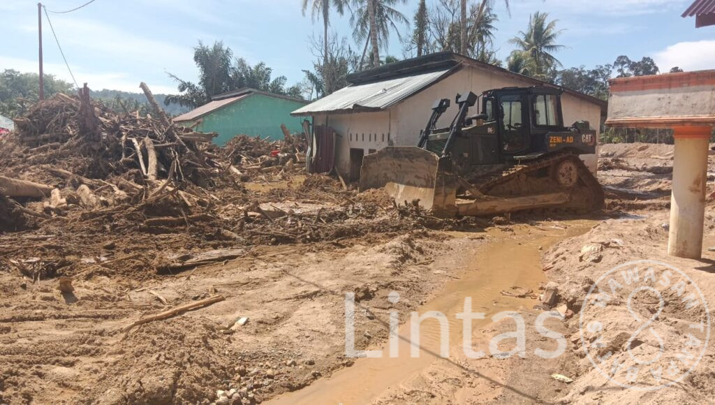 Dalam kegiatan tersebut, dua unit bulldozer dikerahkan untuk membersihkan material kayu, tanah, dan lumpur yang menutupi akses jalan serta area di sekitar gereja dan bantaran sungai. Pembersihan dilakukan secara bertahap agar akses masyarakat kembali terbuka dan aktivitas ibadah dapat berjalan normal.