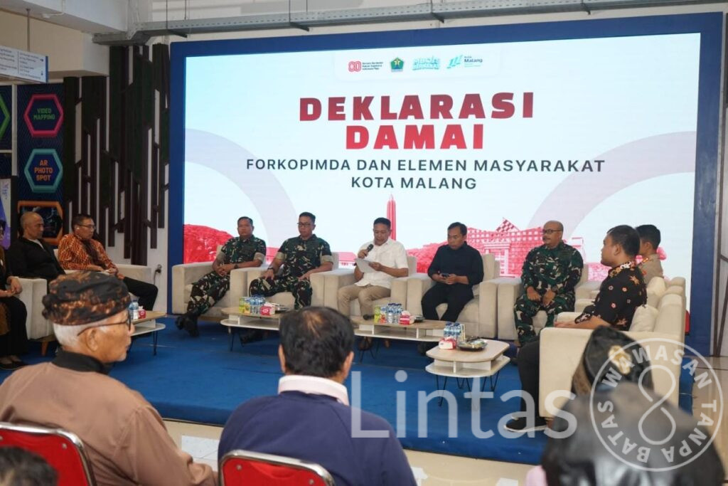 MALANG – Suasana penuh kebersamaan mewarnai Deklarasi Kota Malang Damai yang digelar Minggu malam (31/08/2025). Hadir dalam acara tersebut jajaran Forkopimda, tokoh agama, forum rektor, serta berbagai elemen masyarakat. Semua menyatukan tekad menjaga Malang tetap aman, tenteram, dan penuh persaudaraan.