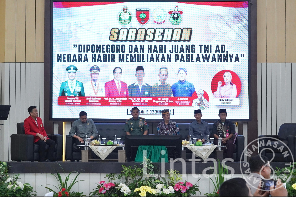 Makassar – Pangdam XIV/Hasanuddin Mayjen TNI Bangun Nawoko memimpin Acara Sarasehan dalam rangka memperingati Hari Juang TNI AD, yang mengusung tema “Diponegoro dan Hari Juang TNI AD, Negara Hadir Memuliakan Pahlawannya”, bertempat di Balai Pertemuan Hasanuddin (BPH) Makodam, Jl. Urip Sumoharjo, Kota Makassar. Selasa, (16/12/2025).