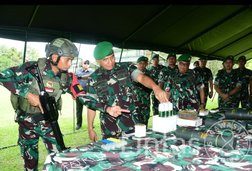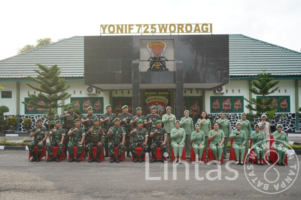Konsel – Guna meningkatkan moral, disiplin, dan soliditas prajurit dalam menghadapi berbagai agenda tugas ke depan, Pangdam XIV/Hasanuddin Mayjen TNI Bangun Nawoko didampingi Ketua Persit Kartika Chandra Kirana PD XIV/Hasanuddin Ny. Renny Bangun Nawoko, melaksanakan kunjungan kerja di Yonif 725/Woroagi, Desa Rambu-rambu Jaya, Kecamatan Ranometo, Kabupaten Konawe Selatan, Sulawesi Tenggara, Rabu (26/11/2025).