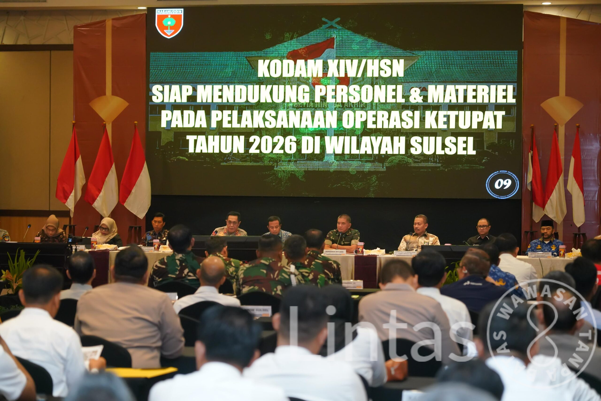 Makassar – Pangdam XIV/Hasanuddin Mayjen TNI Bangun Nawoko menghadiri Rapat Koordinasi (Rakor) Lintas Sektoral dalam rangka Kesiapan Operasi Kepolisian Terpusat Ketupat – 2026 Pengamanan Hari Raya Idul Fitri 1447 H, bertempat di Hotel Harper, Jl. Perintis Kemerdekaan, Kota Makassar. Kamis, (5/3/2026).