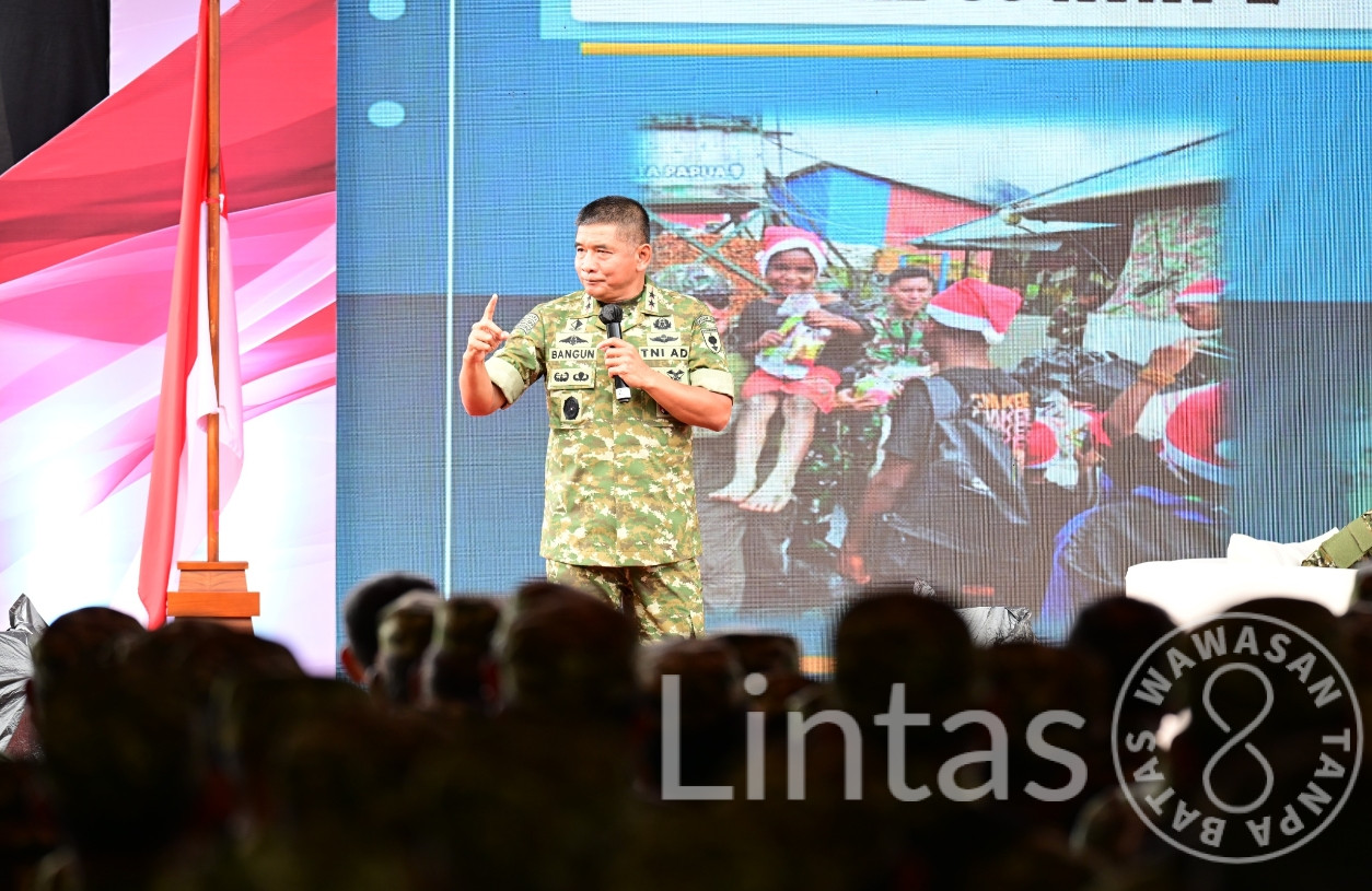 Gowa – Pangdam XIV/Hasanuddin Mayjen TNI Bangun Nawoko memberikan materi pembekalan kepada para Kepala Desa peserta Jambore Kepala Desa se-Sulawesi Selatan yang digelar di Rindam XIV/Hasanuddin, Jl. Malino, Pakatto, Kab. Gowa. Jumat, (12/12/2025).