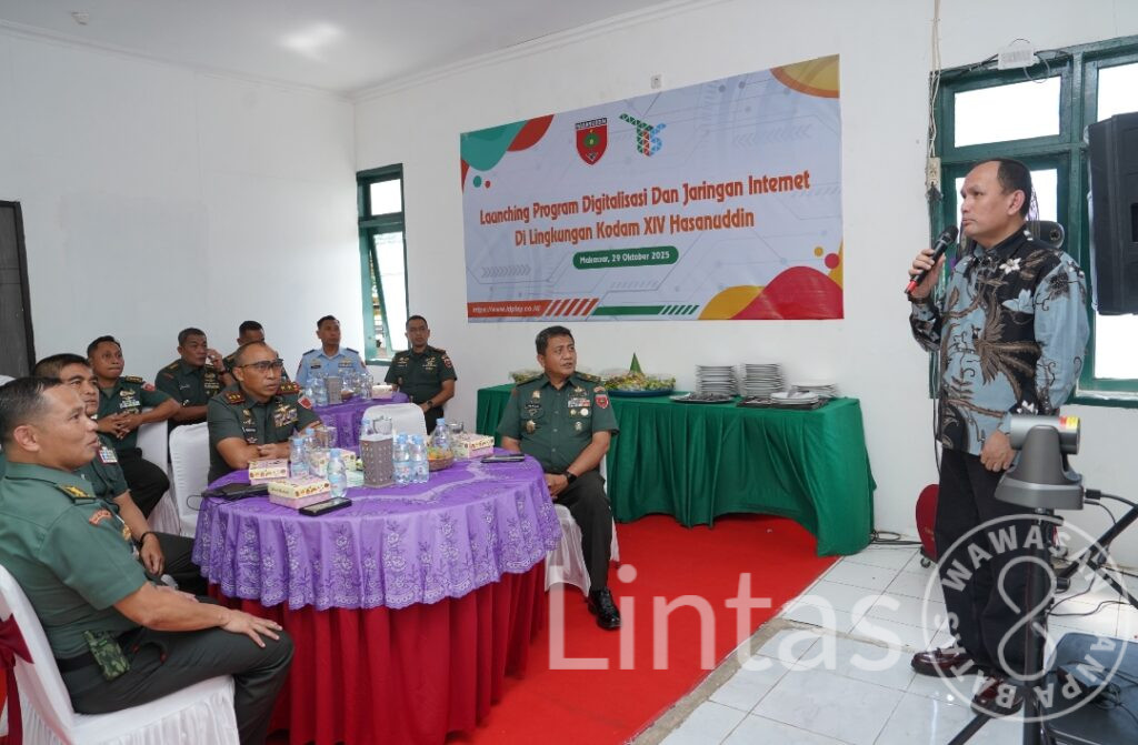 Makassar – Pangdam XIV/Hasanuddin Mayjen TNI Windiyatno memimpin kegiatan Launching Program Digitalisasi dan Jaringan Internet di Lingkungan Kodam XIV/Hasanuddin, bertempat di Kantor Radio Station (RAS) Makodam, Jl. Urip Sumoharjo, Kota Makassar. Rabu, (29/10/2025).