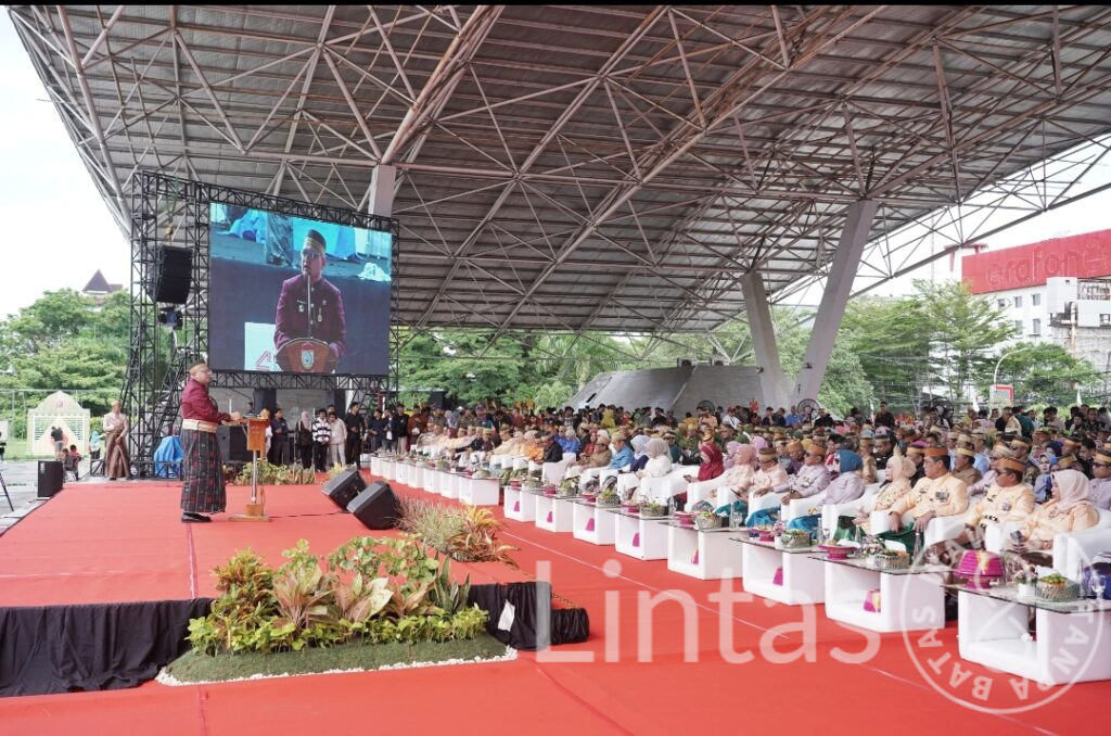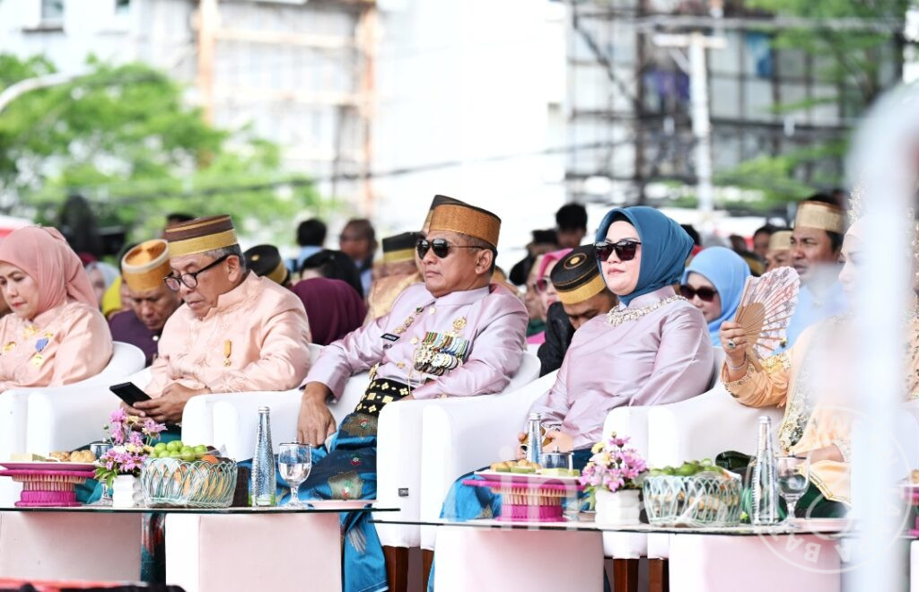 Makassar – Pangdam XIV/Hasanuddin Mayjen TNI Bangun Nawoko didampingi Ketua Persit Kartika Chandra Kirana PD XIV/Hsn Ny. Renny Bangun Nawoko menghadiri acara peringatan Hari Jadi ke-418 Kota Makassar, yang berlangsung khidmat di Lapangan Karebosi, Jl. Ahmad Yani, Kota Makassar. Minggu, (9/11/2025).