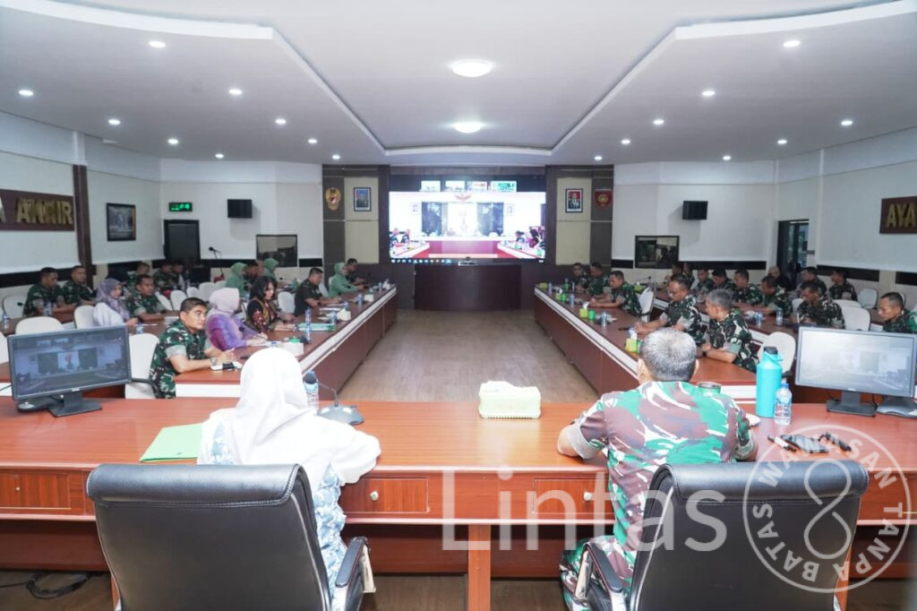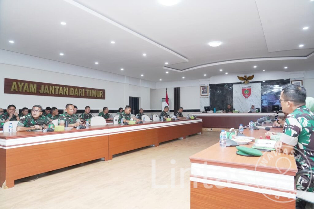 Makassar – Pangdam XIV/Hasanuddin, Mayjen TNI Windiyatno, didampingi Ketua Persit Kartika Chandra Kirana (KCK) PD XIV/Hasanuddin, Ny. Infita Windiyatno, memberikan pengarahan kepada seluruh Komandan Satuan (Dansat) dan Ketua Cabang Persit KCK se-Jajaran Kodam XIV/Hasanuddin, yang diikuti secara luring maupun melalui Video Conference (Vicon). Kegiatan ini berlangsung di Ruang Bina Yudha (RBY) Makodam, Jl. Urip Sumoharjo, Kota Makassar. Jumat (10/10/2025).