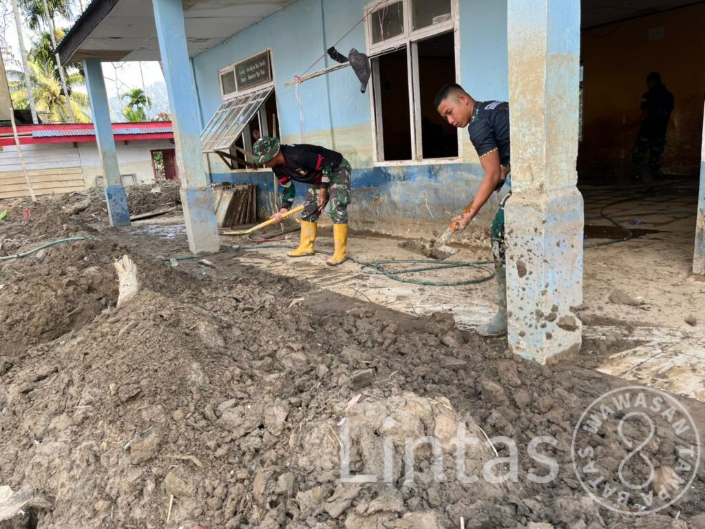 Komandan Kodim 0106/Aceh Tengah Letkol Inf Raden Herman Sasmita melalui Bati Tuud Koramil 05/Linge Serka M.T Hasibuan menyampaikan bahwa proses pembersihan telah mencapai 100 persen. “Seluruh ruangan sudah bebas dari lumpur. Dinding bagian dalam dan luar gedung telah dibersihkan, dan area lingkungan sekolah juga sudah dirapikan,” ujar Hasibuan.