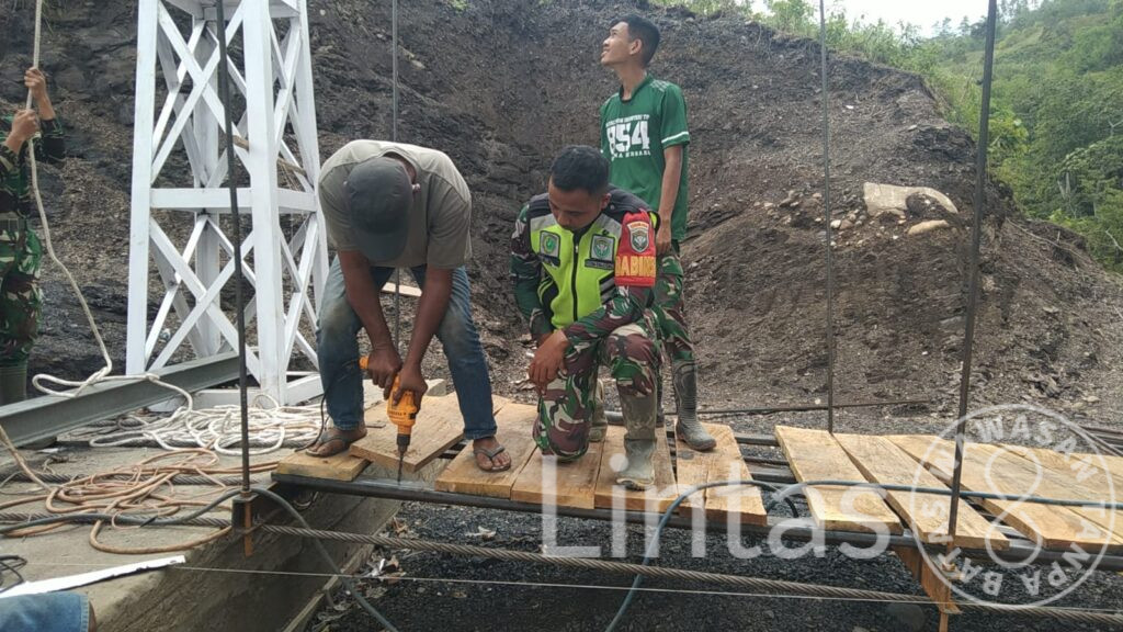 Kapten Inf Iwan Mulyawan menyampaikan bahwa progres pembangunan berjalan sesuai rencana dengan tetap mengedepankan kualitas dan faktor keamanan konstruksi. “Kami terus mengoptimalkan pekerjaan di lapangan agar pembangunan jembatan gantung ini dapat selesai tepat waktu dan segera dimanfaatkan oleh masyarakat. Sinergi seluruh personel menjadi kunci percepatan pembangunan,” ujarnya.